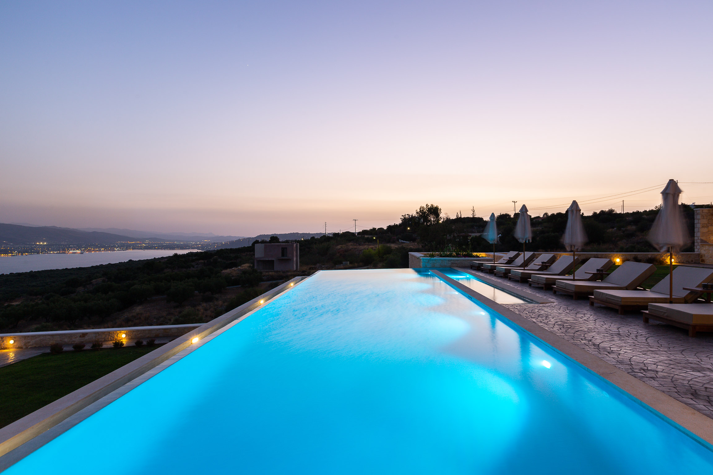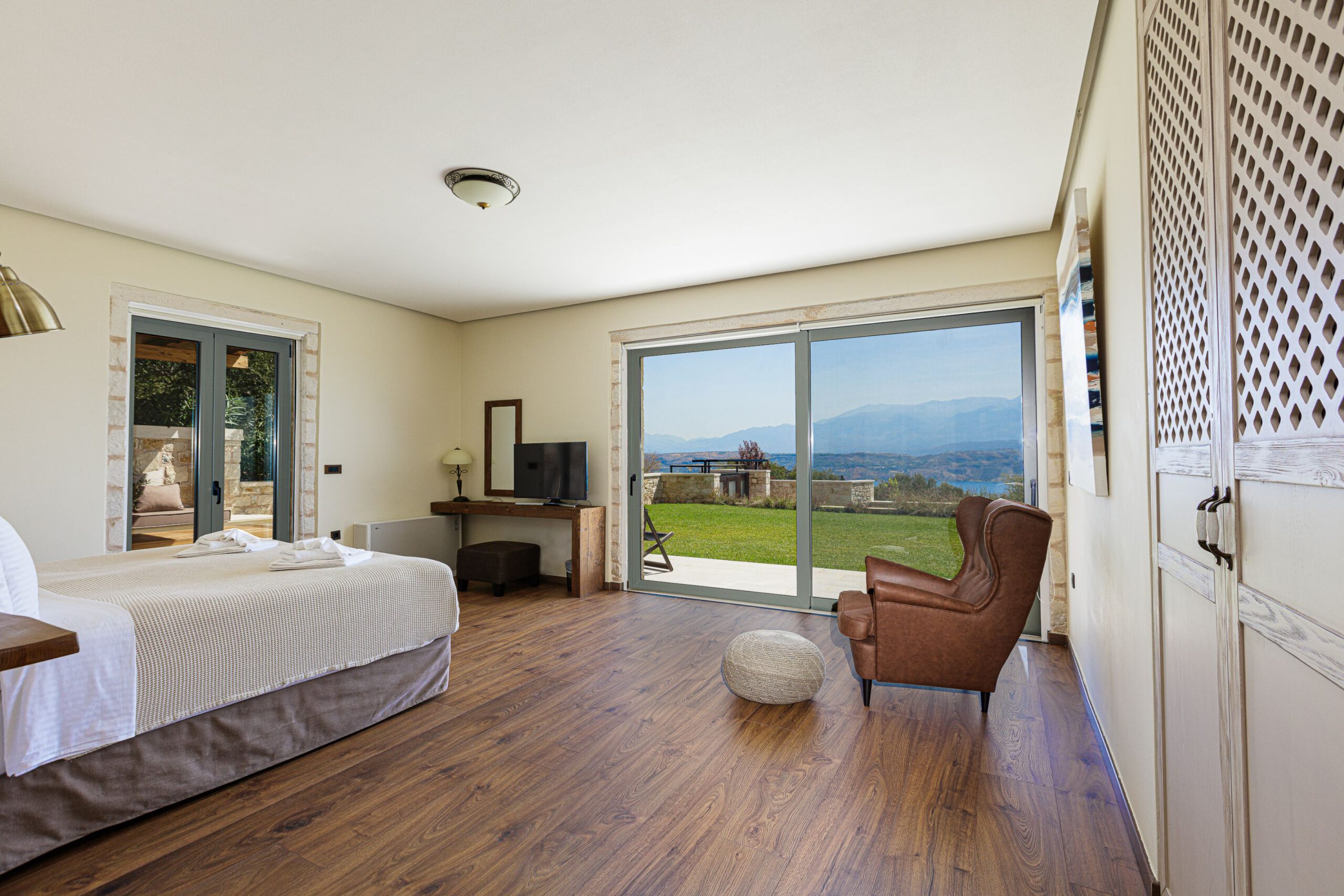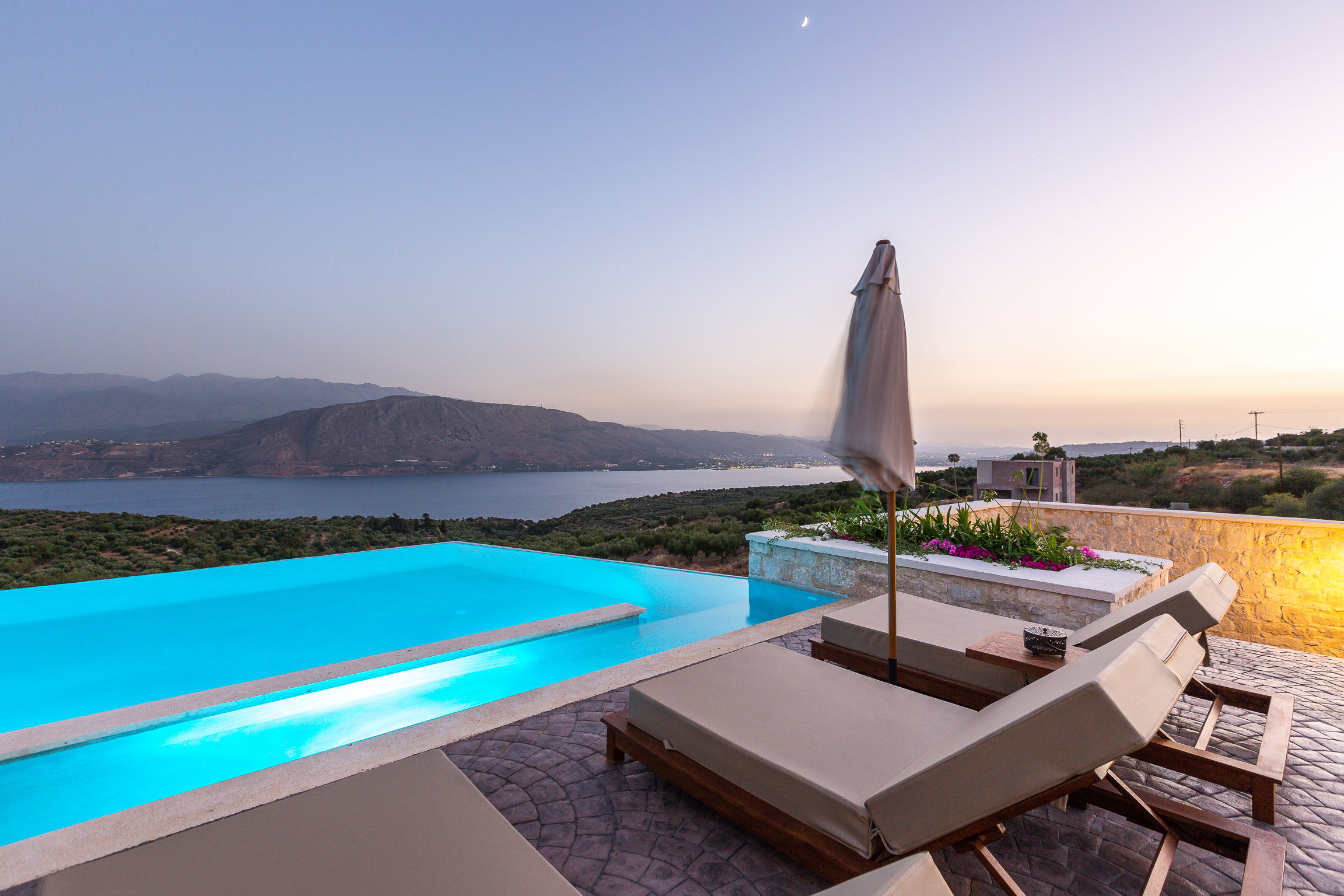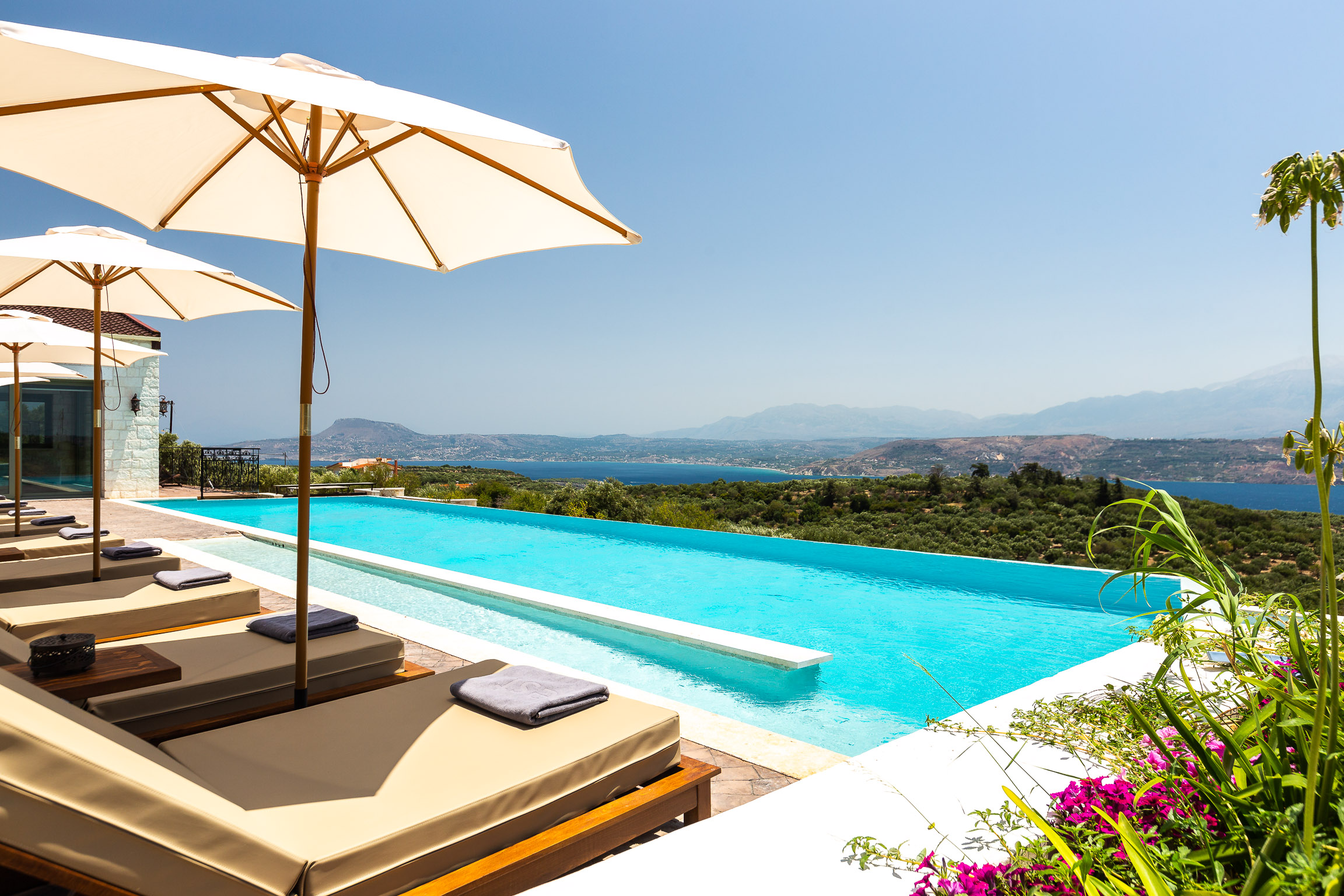 הווילה שוכנת על ראש גבעה, משקיפה על נוף פנורמי של הים, ההרים הלבנים, מפרץ סודה Souda Bay והסביבה. .