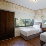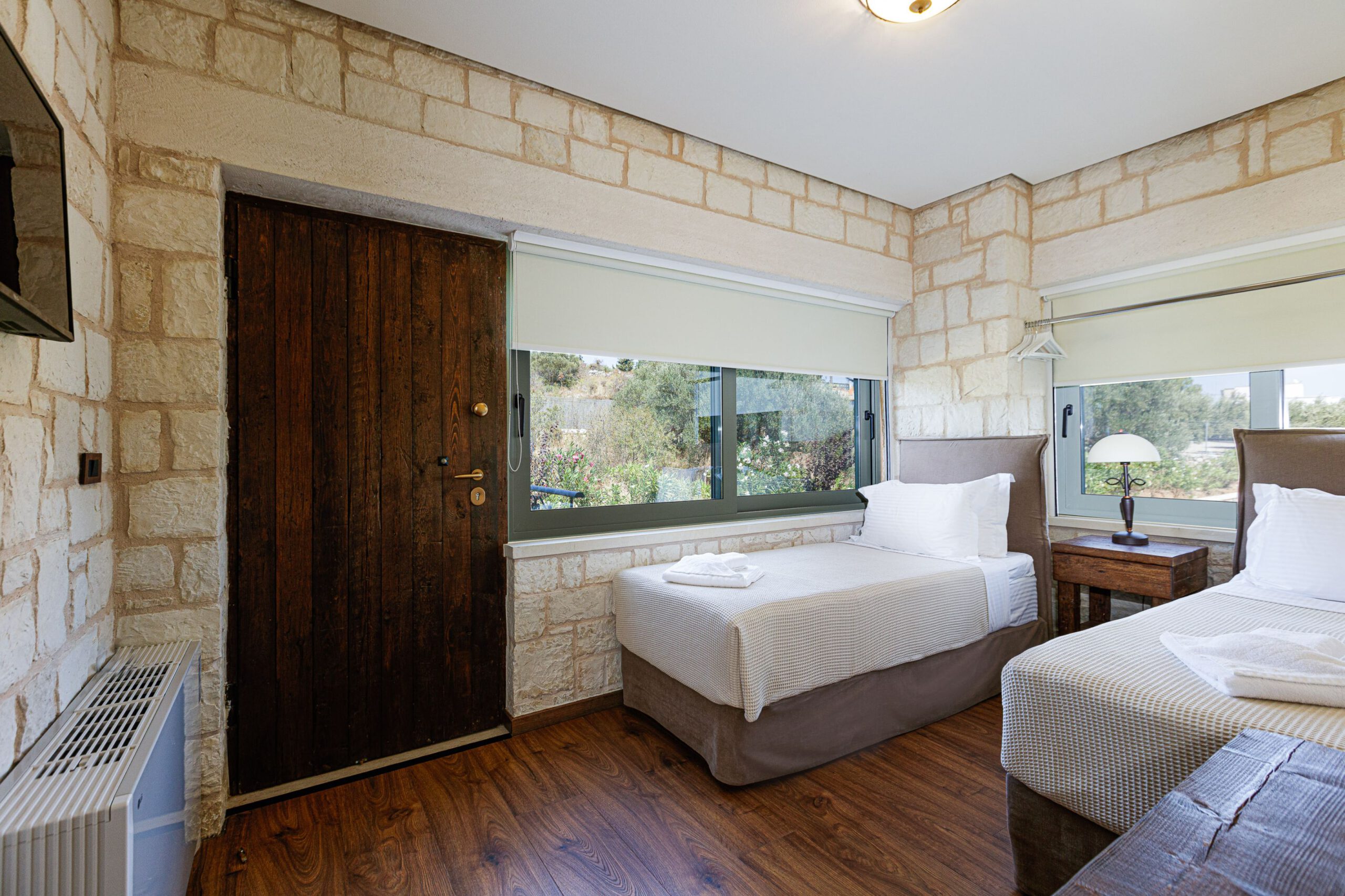 -מיטת קינג סייז (1,80 x 2,00) הניתנת להסבה לשתי מיטות יחיד על פי בקשה, טלוויזיה בגודל 40 אינץ', חדר רחצה צמוד עם אמבטיה וגישה ישירה לאזור המקורה על הדשא