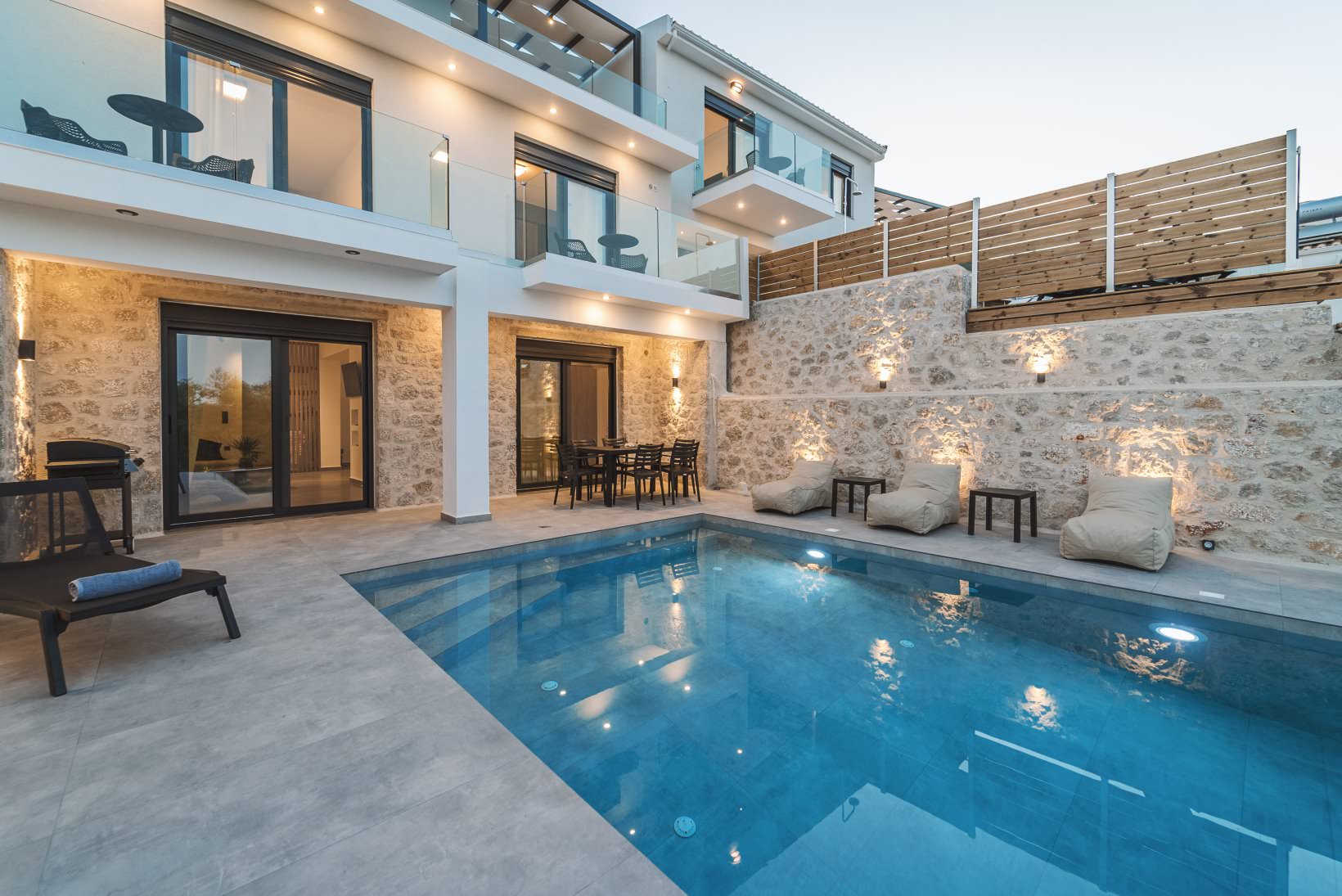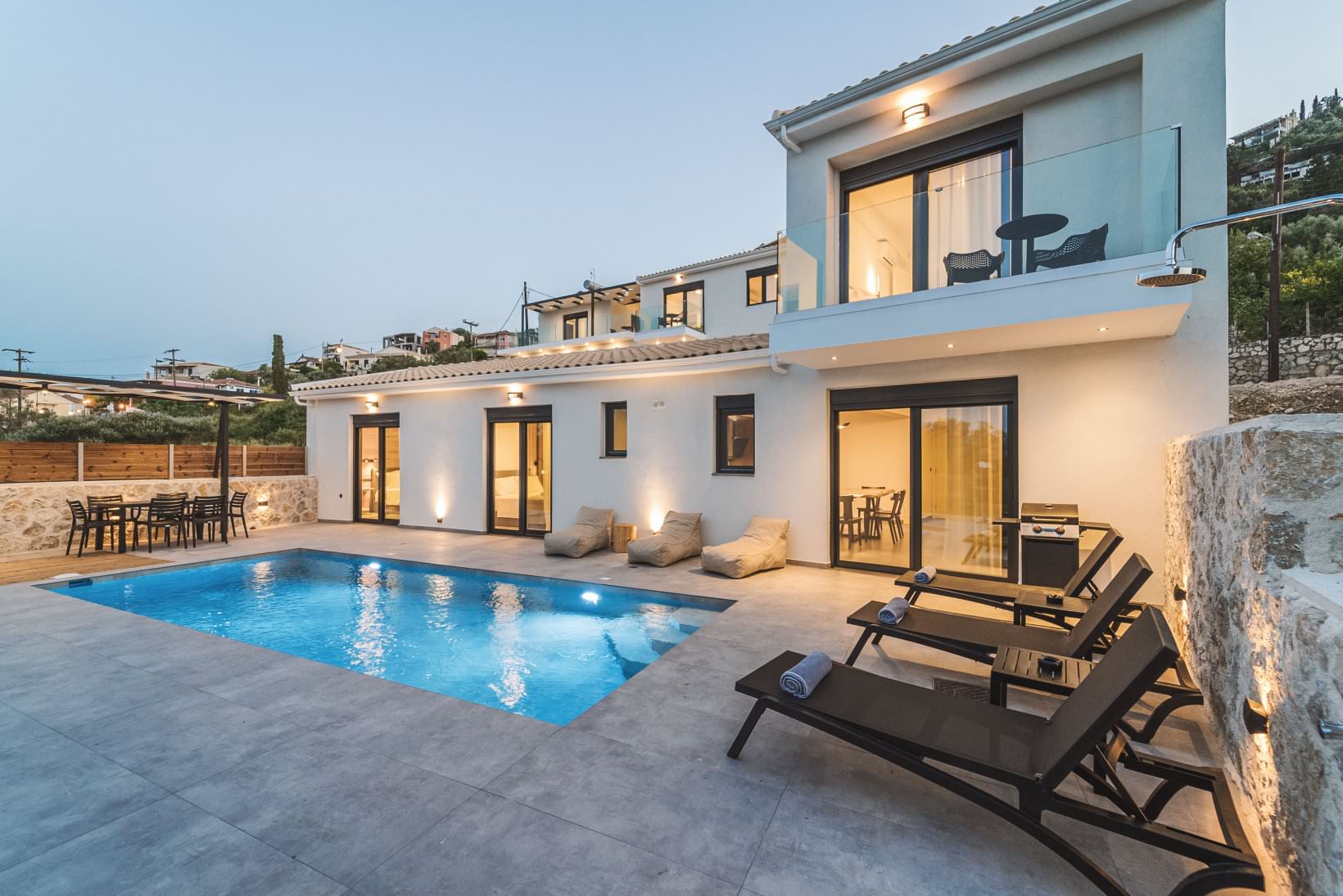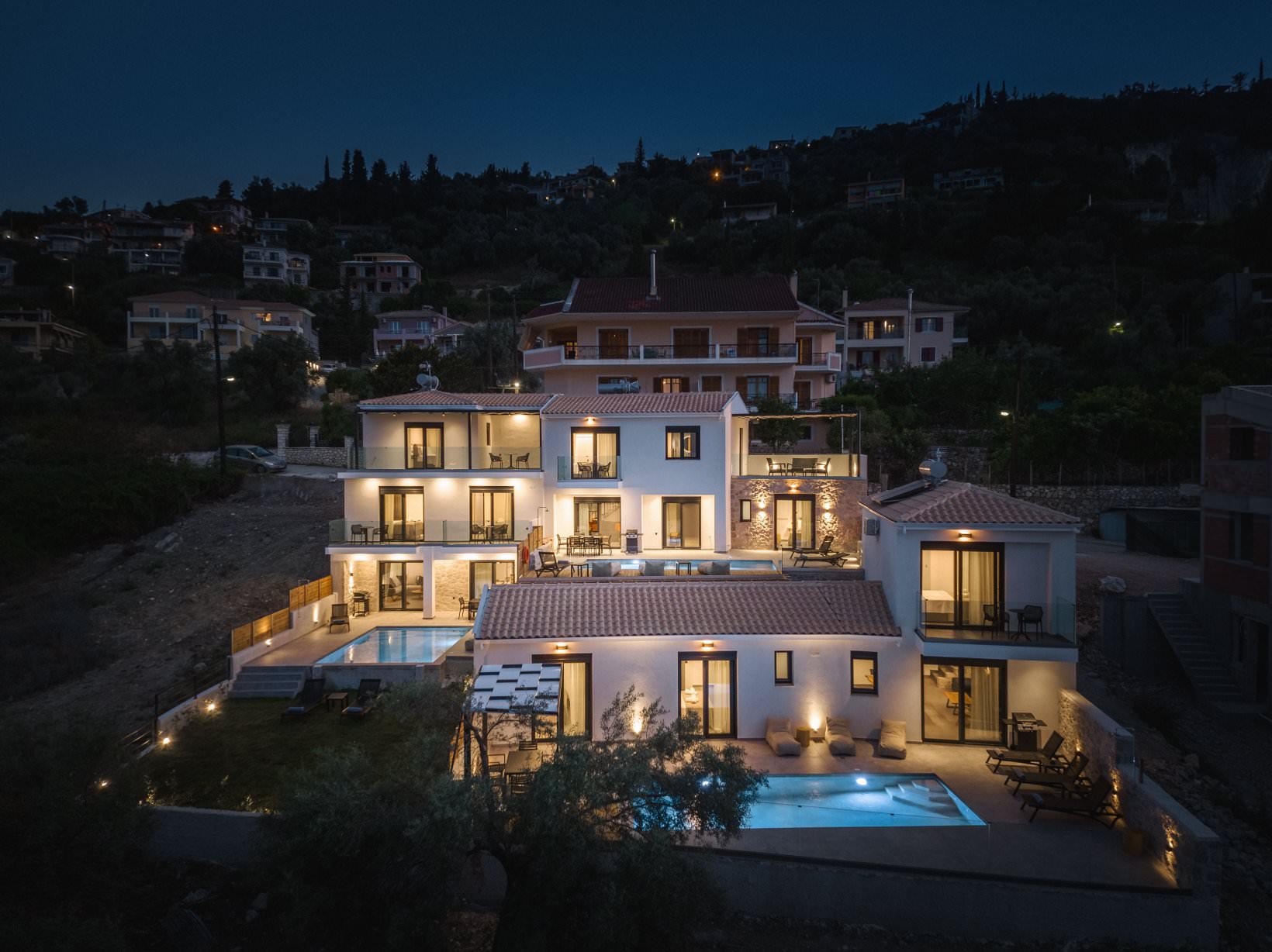 מתחם יוקרה חדש של 3 וילות סמוכות, עצמאיות, ופרטיות לחלוטין. נבנה ומאופיין בצבע לבן, עץ ואבן.