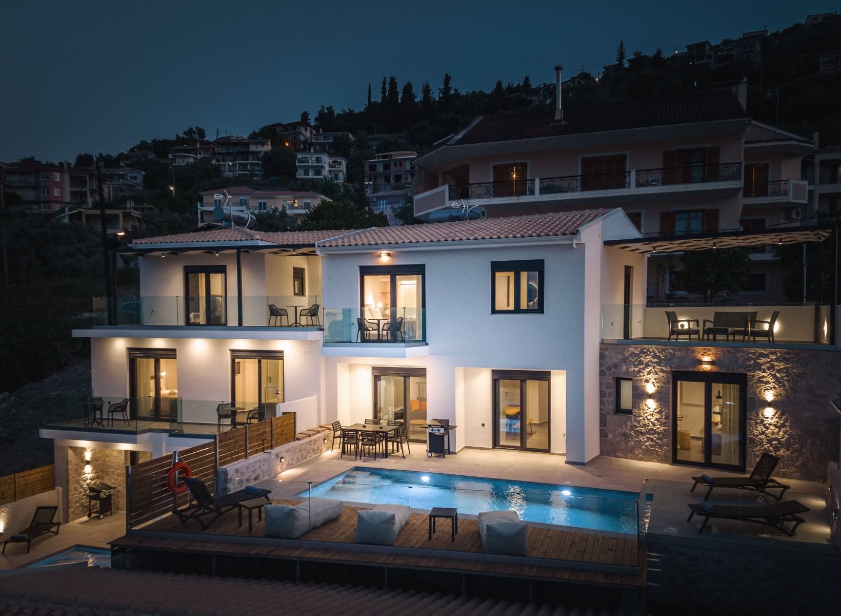 הוילות ממוקמות באזור Apolpaina כ 2 ק"מ מרכז העיר לפקדה, עם חנויות, מסעדות , טברנות מסורתיות, חיי לילה וברים, בתי קפה, חנויות, מינימרקט ועוד.