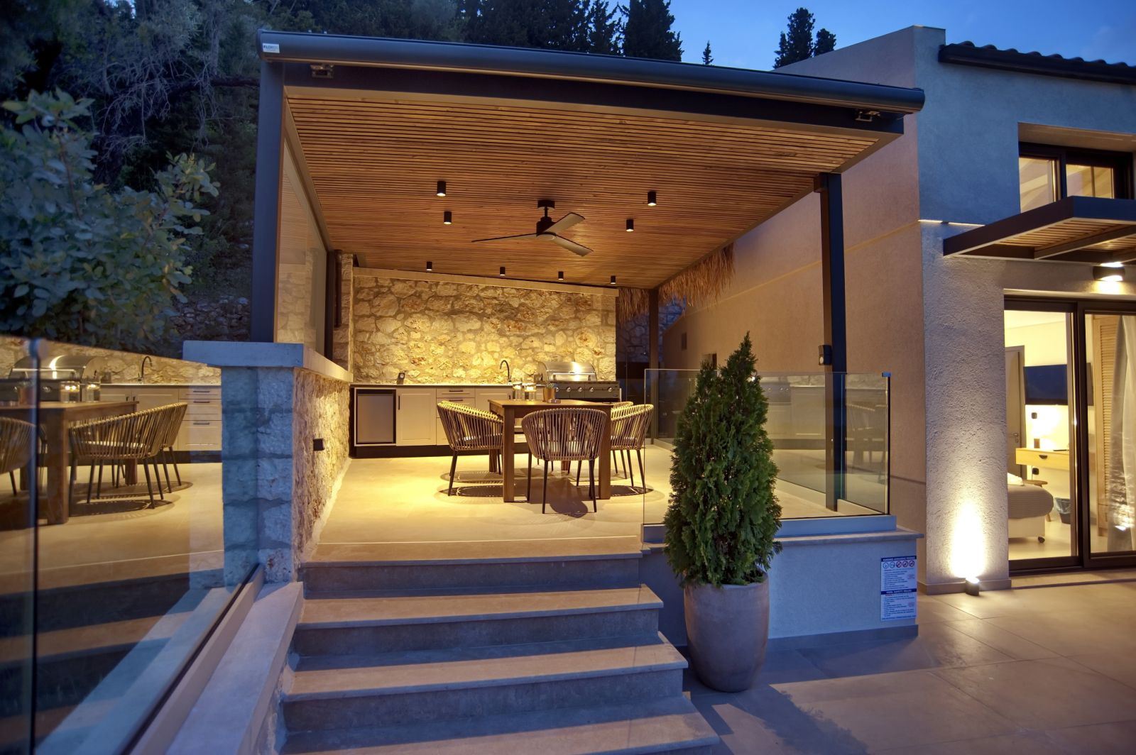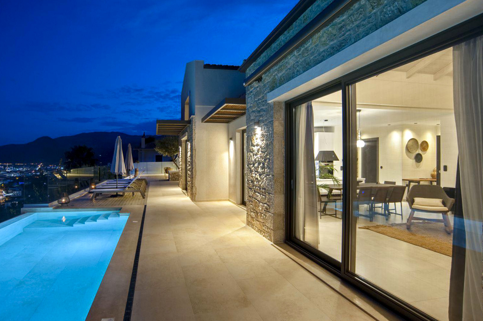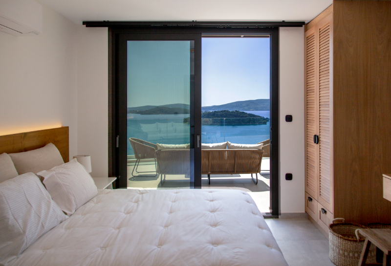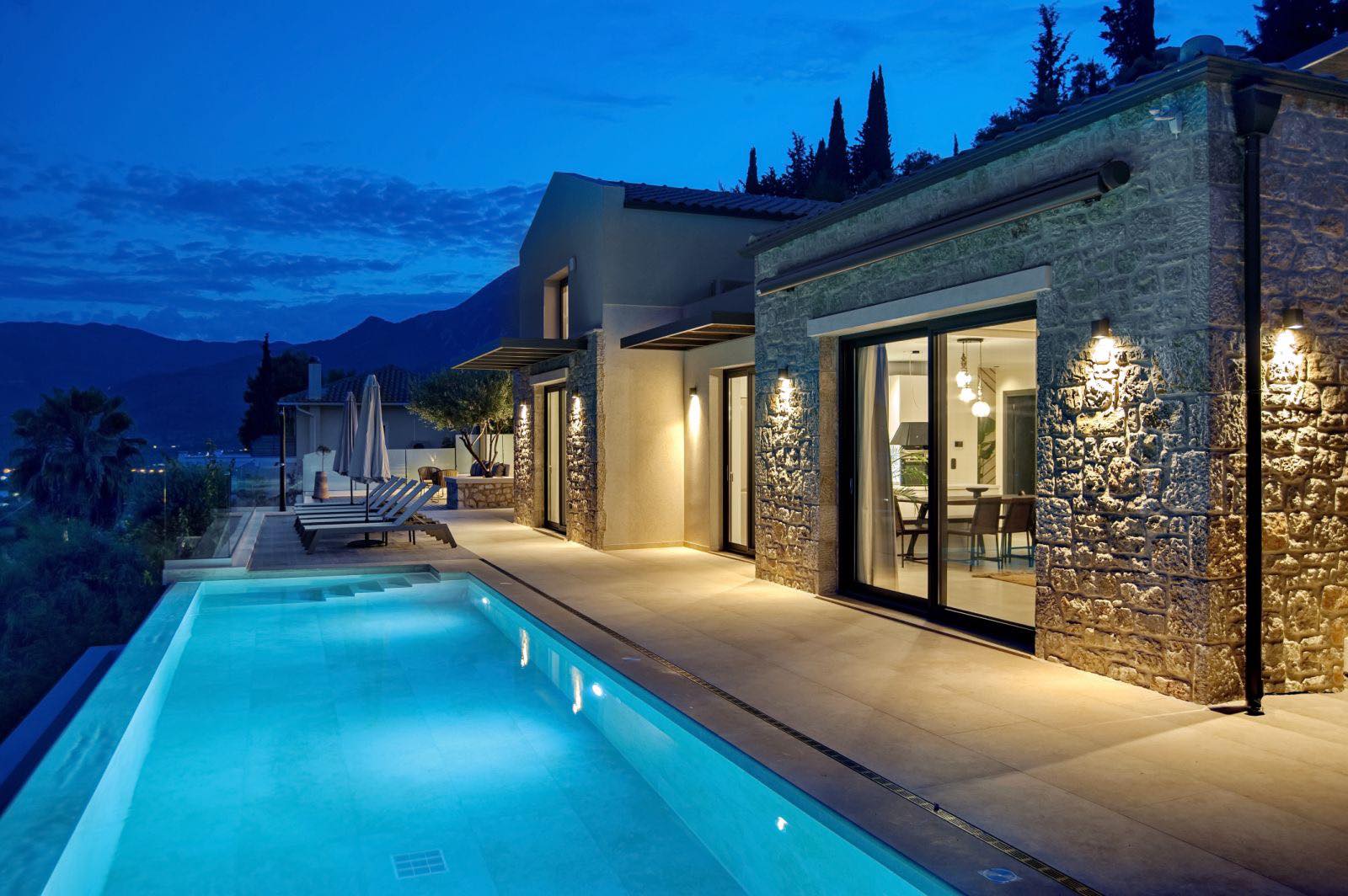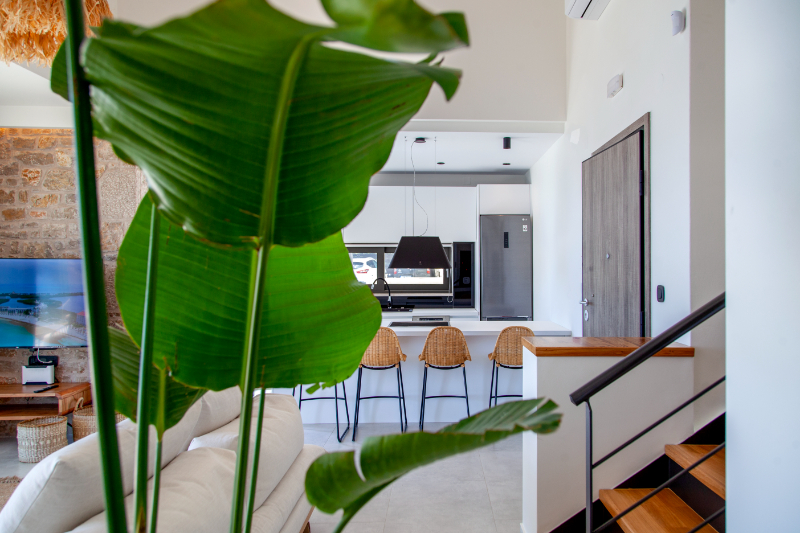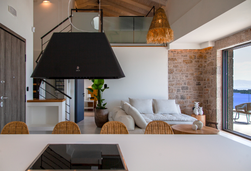העיצוב העכשווי של הוילות מנצל את המיקום הפנורמי על צלע ההר, דלתות הזזה גדולות מזכוכית הנפתחות לבריכה החיצונית, מציפים את חללי הפנים באור טבעי ויוצרים חווית נופש יוונית יוקרתית .