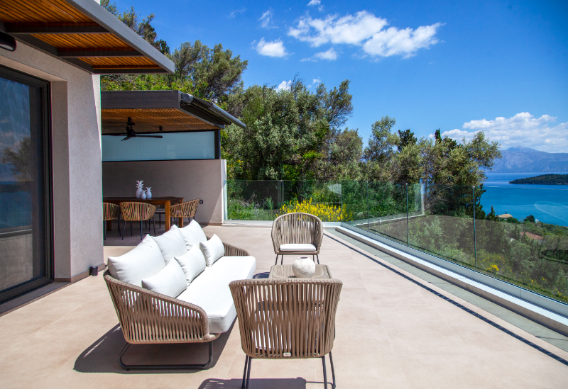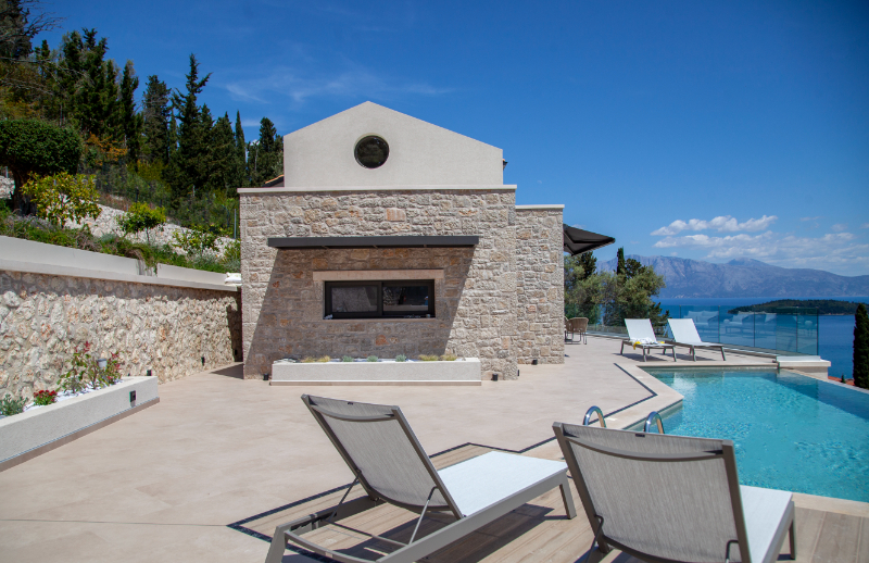 2 וילות יוקרה אקסקלוסיביות עם נוחות ועיצוב מודרני יוקרתית ממוקמות על צלע צלע גבעה בנידרי ,Nidri, בלפקדה Lefkada ומשקיפות על הים היוני Ionian Sea , סקורפיוס Scorpios ומגניסי Meganisi.