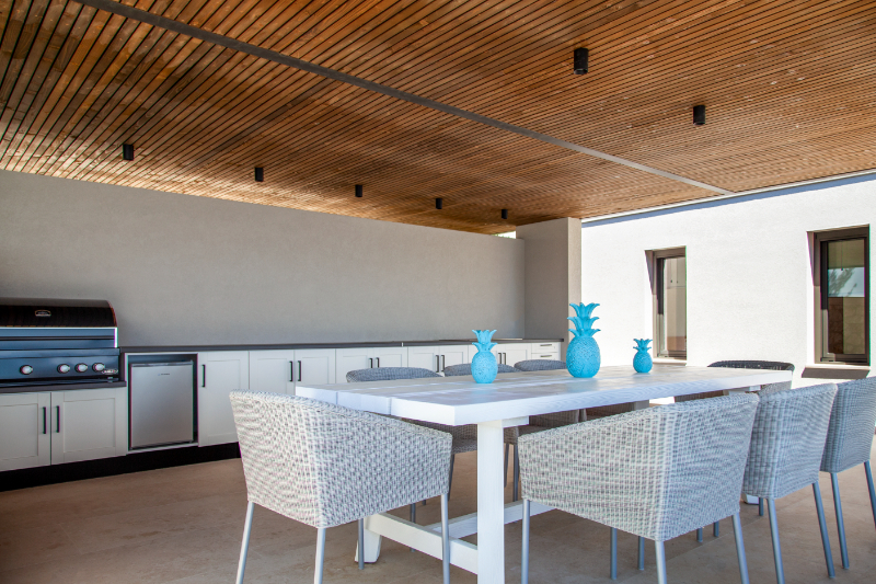 הוילה מוקפת משלושה צדדים בבריכה הפונה לים ופינת ברביקיו , הנוף הפנורמי הקסום והעיצוב המודרני של הוילה בצורה מושלמת. בריכת האינסוף נמצאת ישירות מחוץ לסלון ויש שפע של כיסאות נוח ומיטות שיזוף בפטיו הגדול.