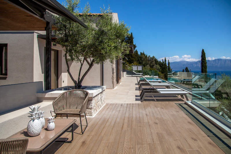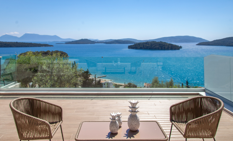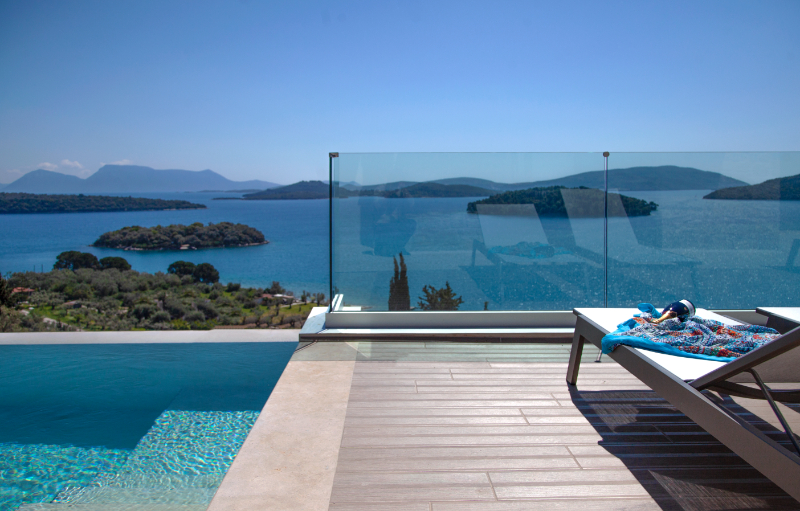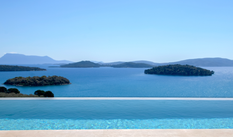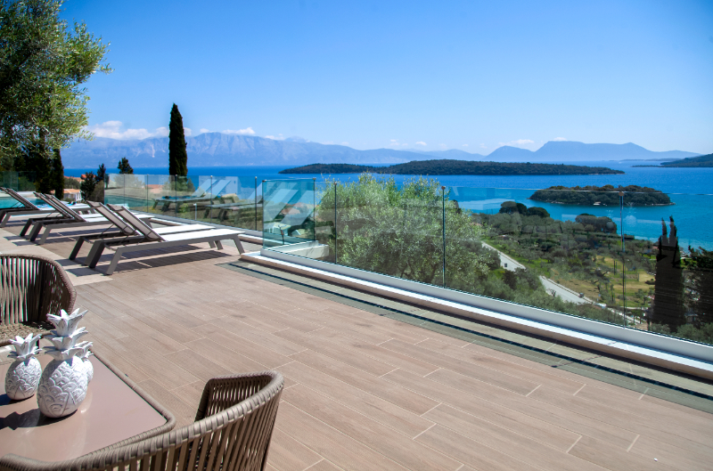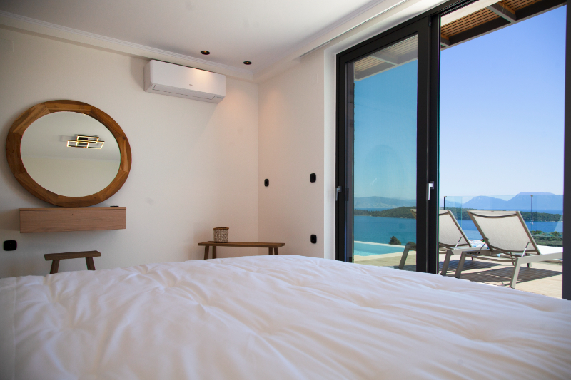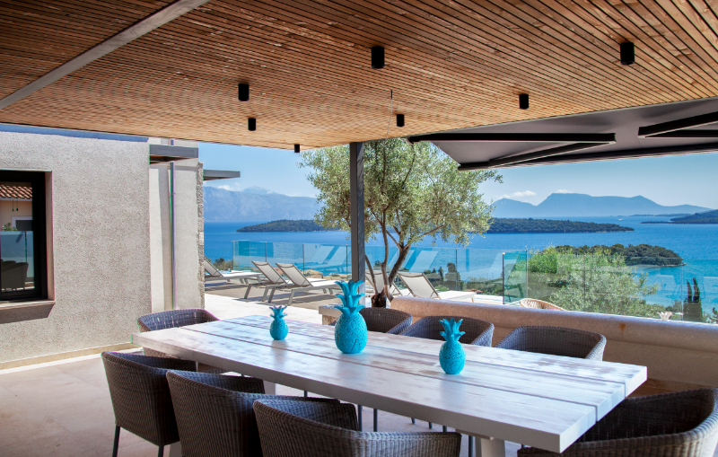 וילת יוקרה אקסקלוסיבית עם נוחות ועיצוב מודרני יוקרתית ממוקמת על צלע צלע גבעה בנידרי ,Nidri, בלפקדה Lefkada ומשקיפה על הים היוני Ionian Sea , סקורפיוס Scorpios ומגניסי Meganisi.