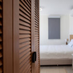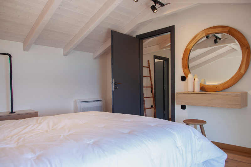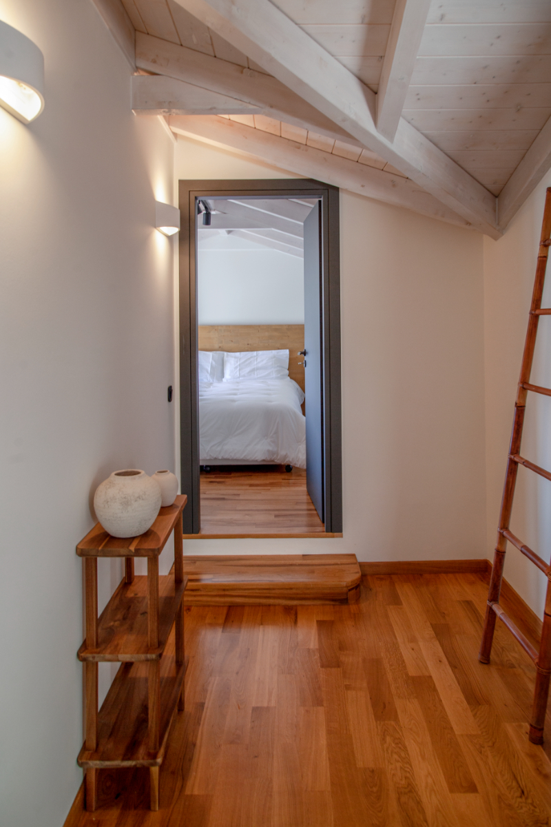 דרך גרם מדרגות פנימי, למפלס העליון: חדר שינה טווין , חדר רחצה עם מקלחת, וחדר השינה הראשי החדרים בקומה העליונה מציעים עוד נקודת תצפית להסתכלות לים דרך החלונות הגדולים הפונים מזרחה.