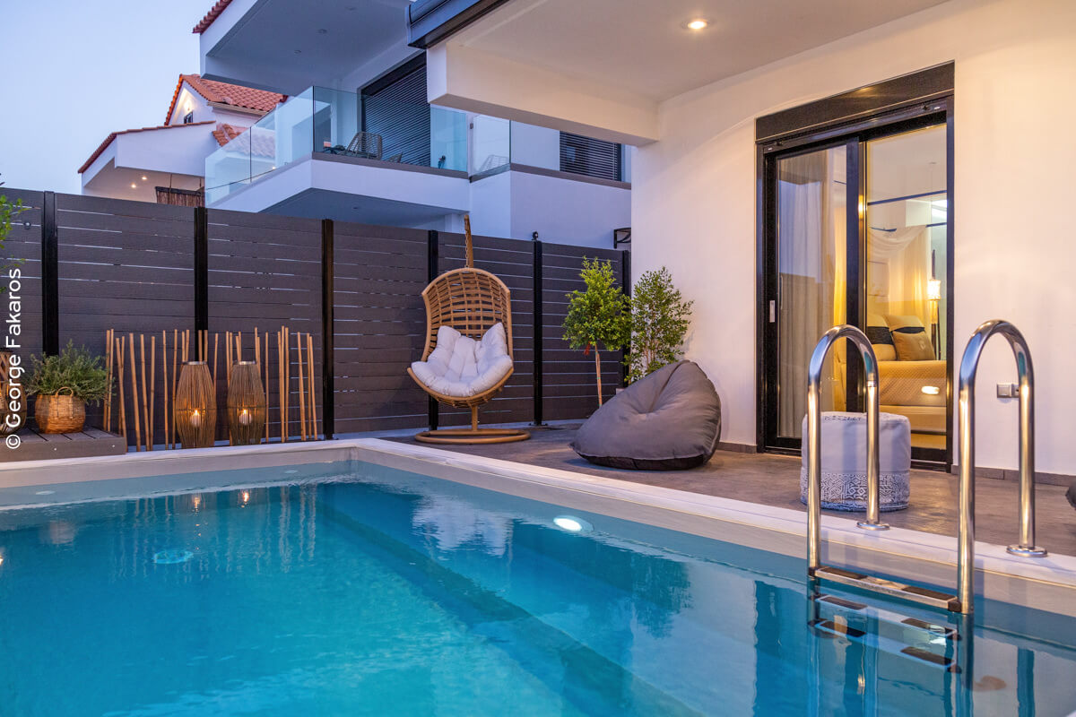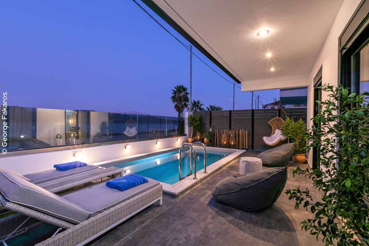 דירה E l e g a n t עם בריכה פרטית – עד 4 אורחים (2 מבוגרים+2 ילדים), נוף לים, שטח פנים: 50 מ"ר, שטח חיצוני: 110 מ"ר