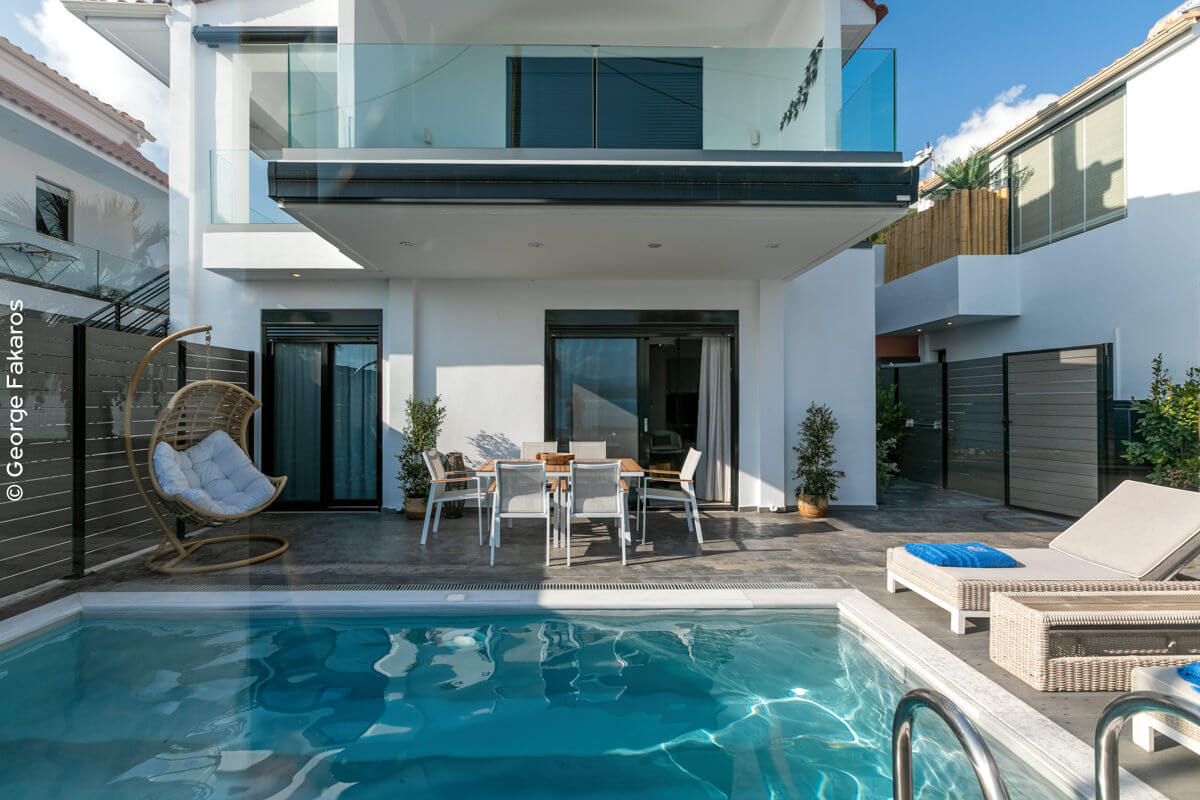 מתחם של 3 וילות מפוארות בסגנון Seaview, ששוכנות 600 מטרים מחוף ליגיה (Lygia Beach) ובמרחק של כ -10 דקות נסיעה מהעיר לפקדה או באזור ניקיאנה, שירותי ViP, ונוף עוצר נשימה של הים היוני!