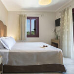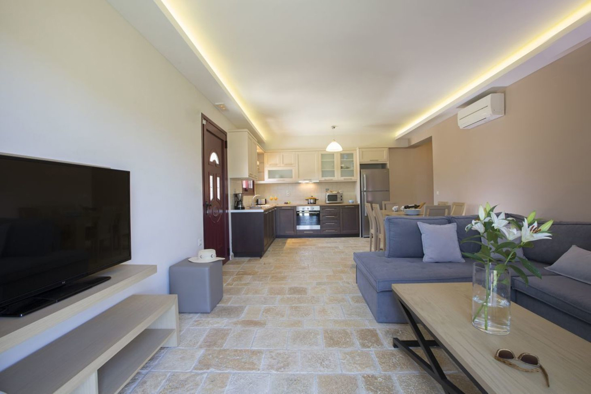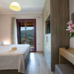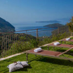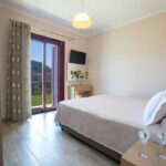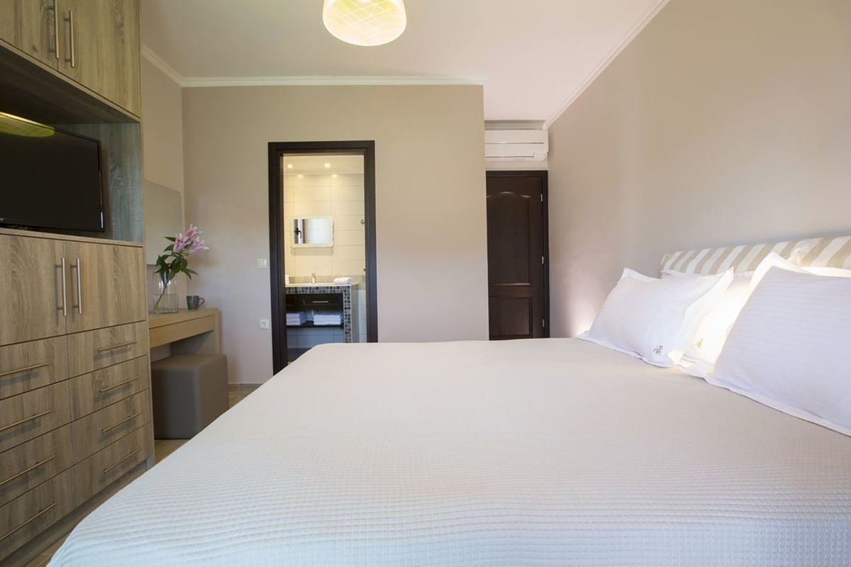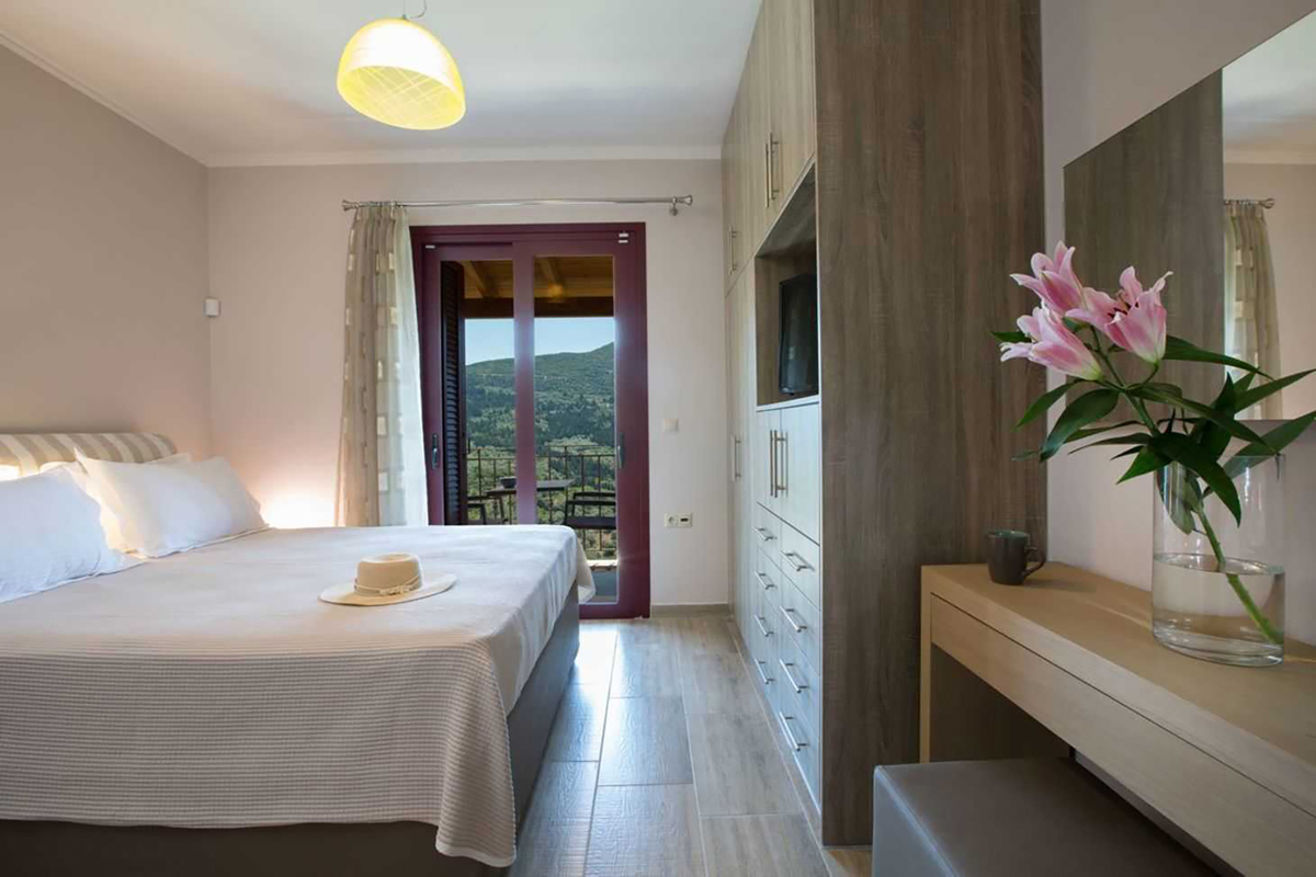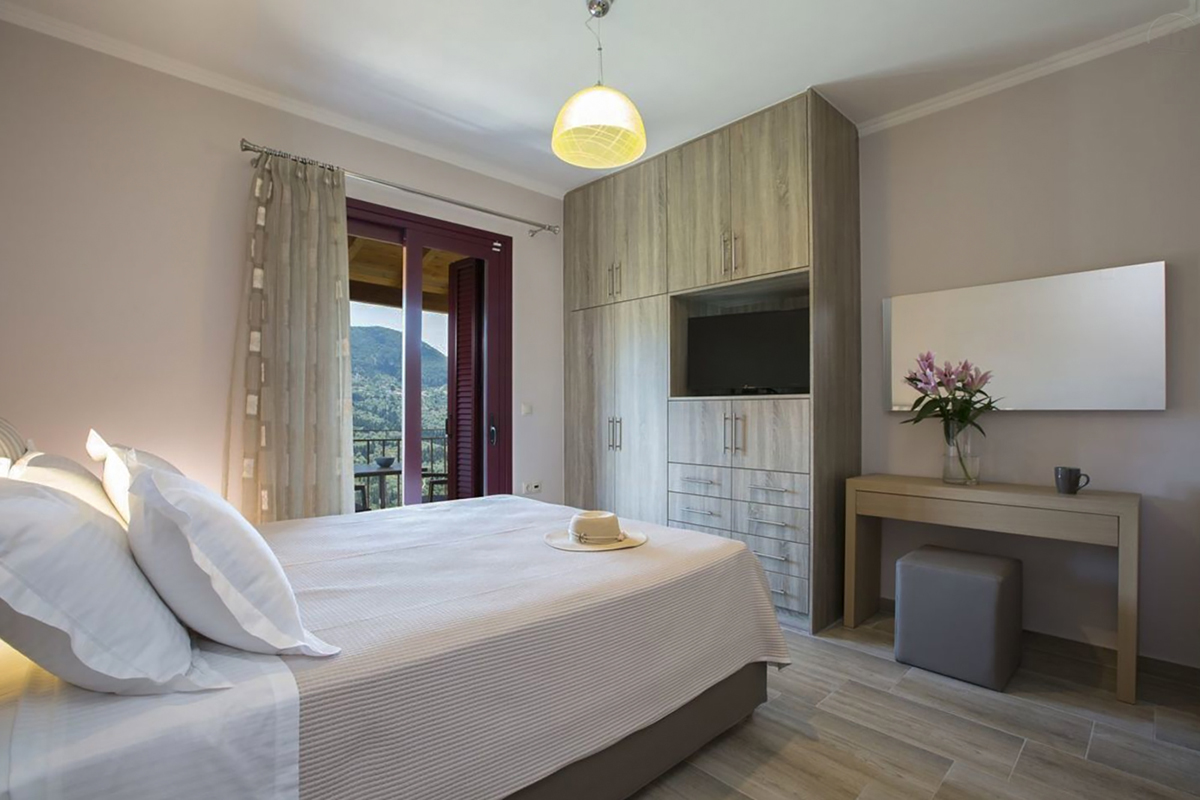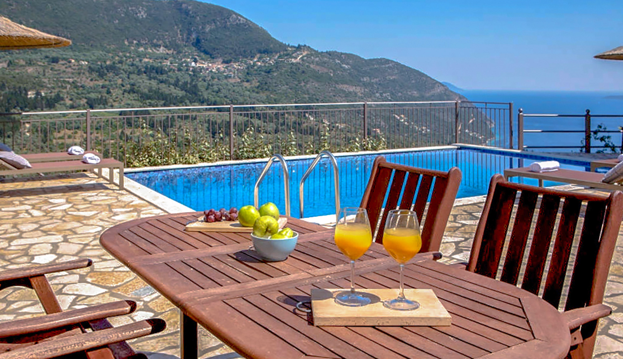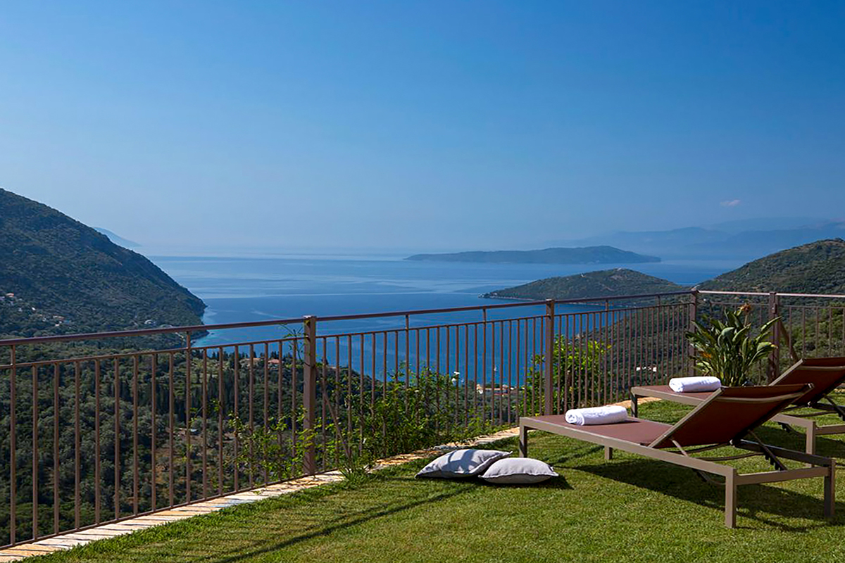The villas are perched on the hillside of the picturesque fishing village of Mikros Gialos with a panoramic view of the Ionian Sea.