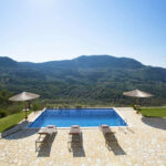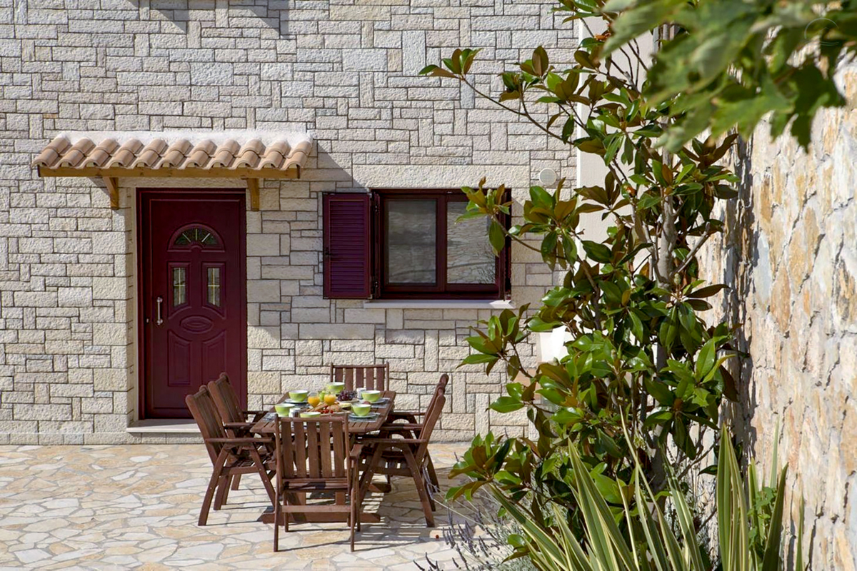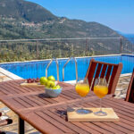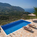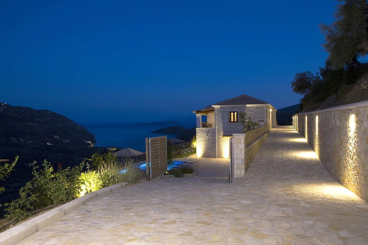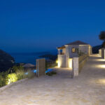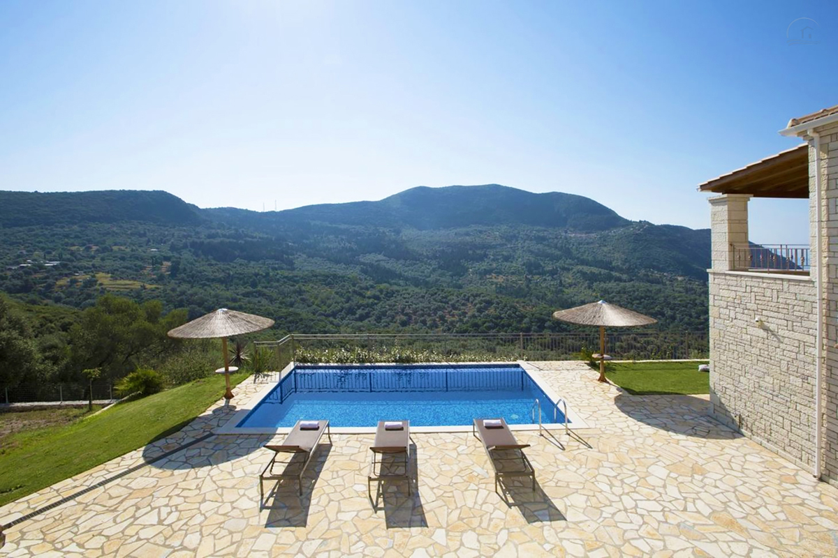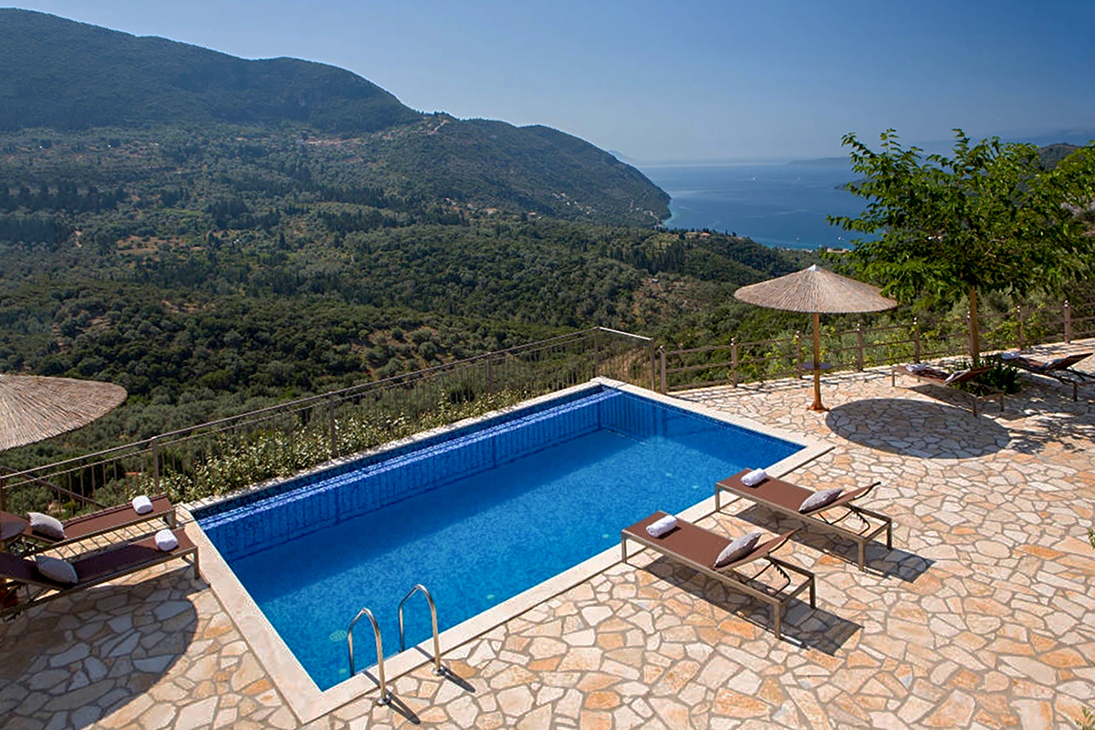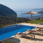 Luxury traditional stone villas with pool and sea views on Lekada Island.