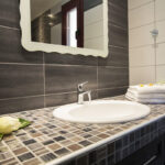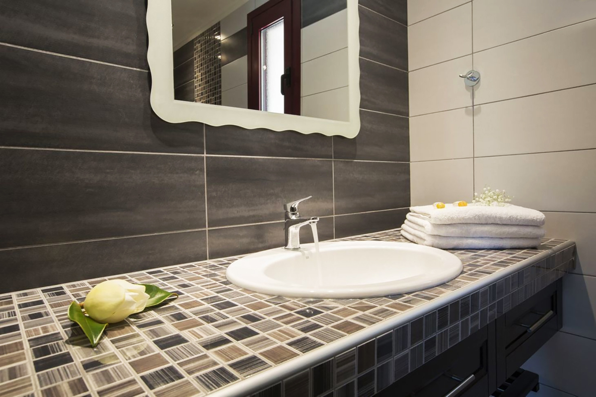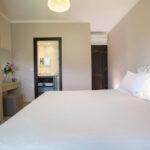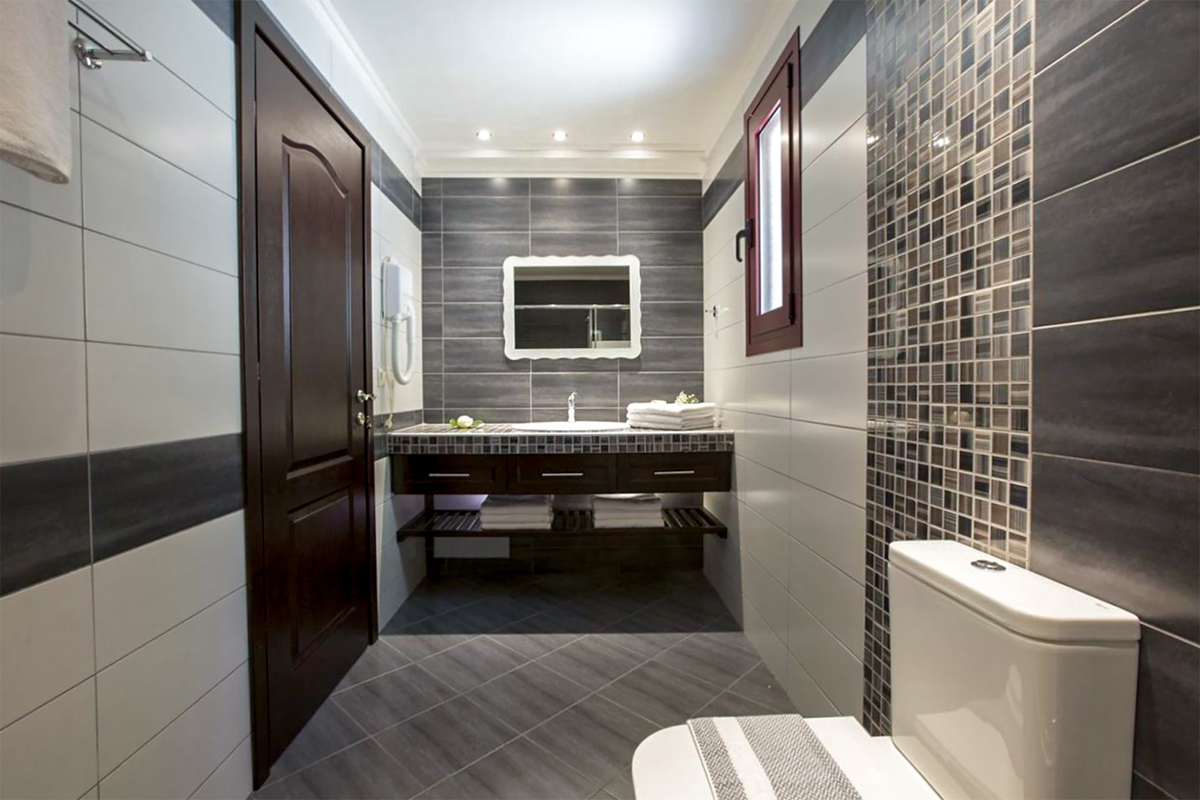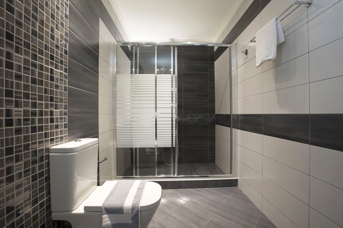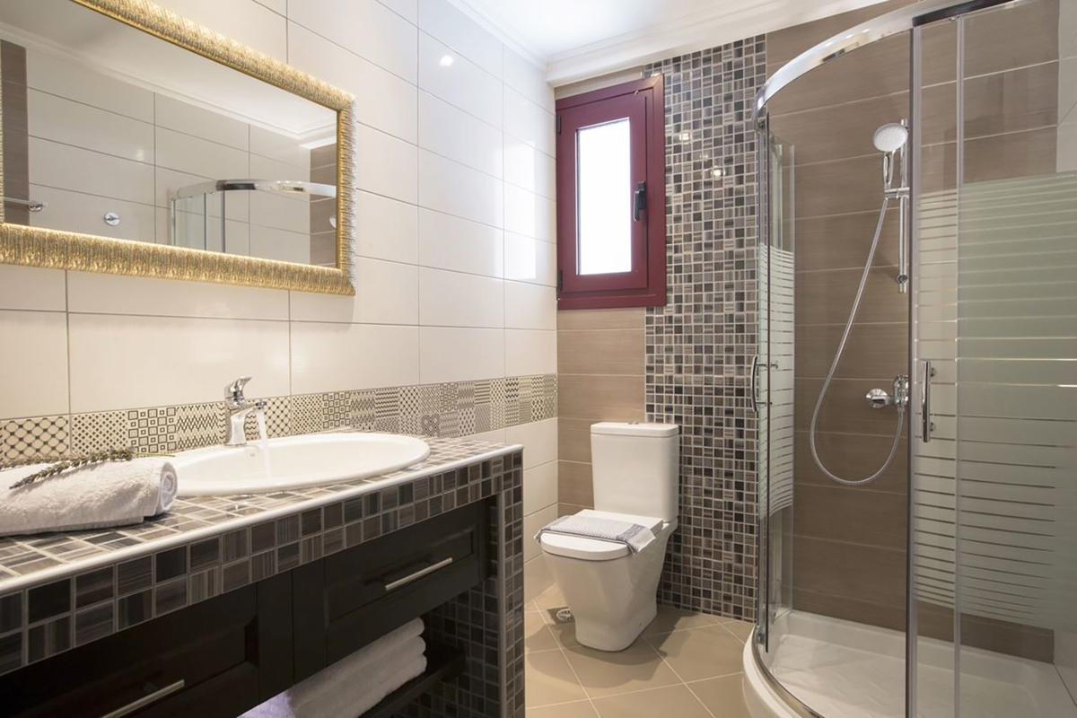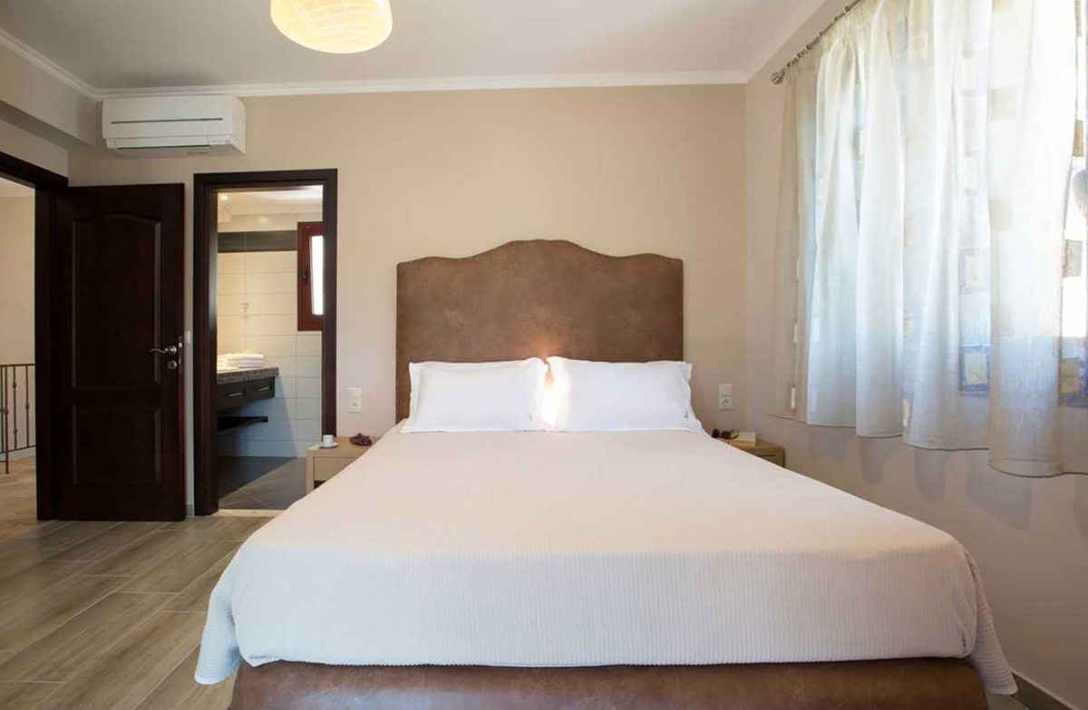 Upper level: two bedrooms. There is a double bedroom and a twin bedroom each with an en-suite bathroom and a private balcony with a stunning view of the Ionian Sea.