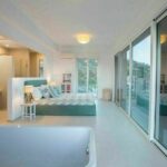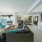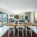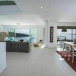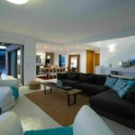 - חלל מגורים פתוח עכשווי עם אלגנטי, פינות ישיבה מפנקות וחלונות גדולים הכולל: סלון פתוח, פינת אוכל ומטבח מאובזר במלואו עם גישה ישירה לבריכה.
