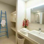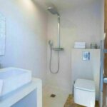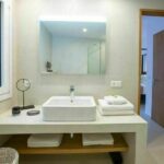 - סוויטת חדר שינה ראשי עם חדר רחצה צמוד הכולל אמבטיה ומקלחת, עם נוף לים.