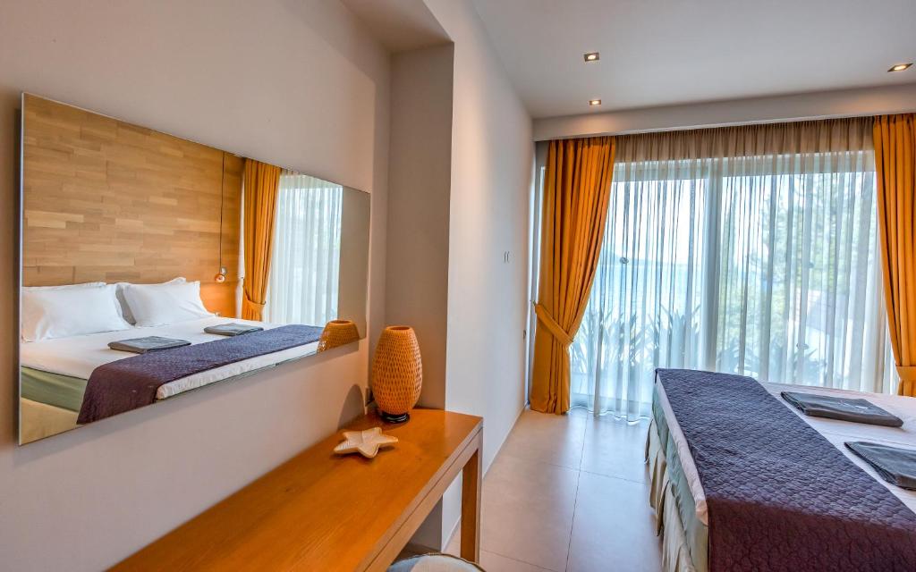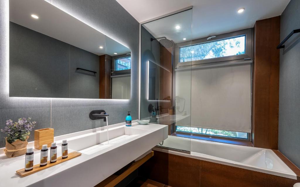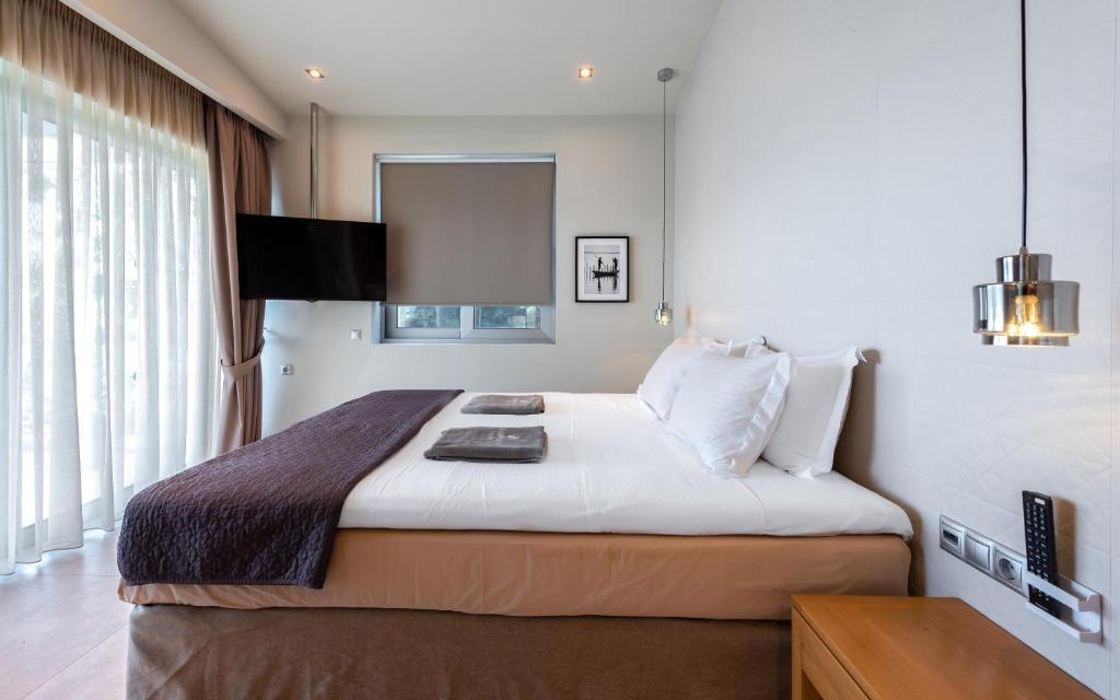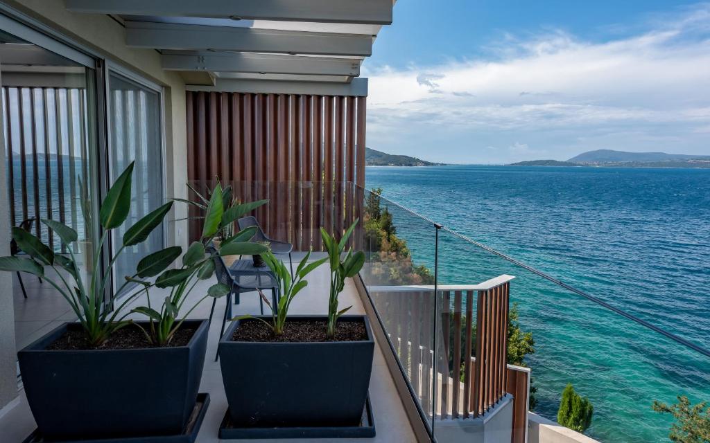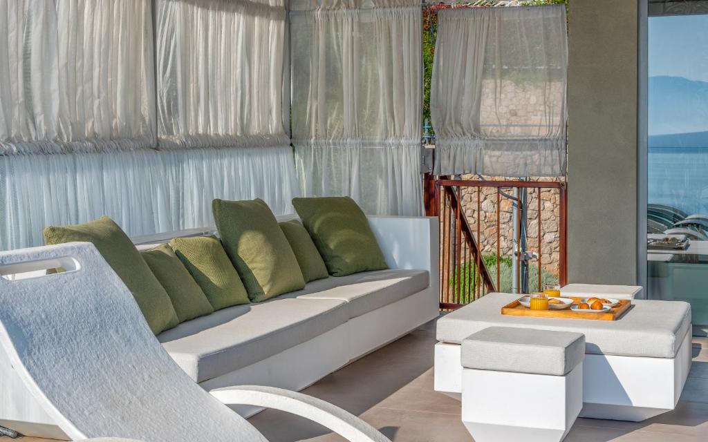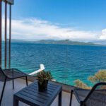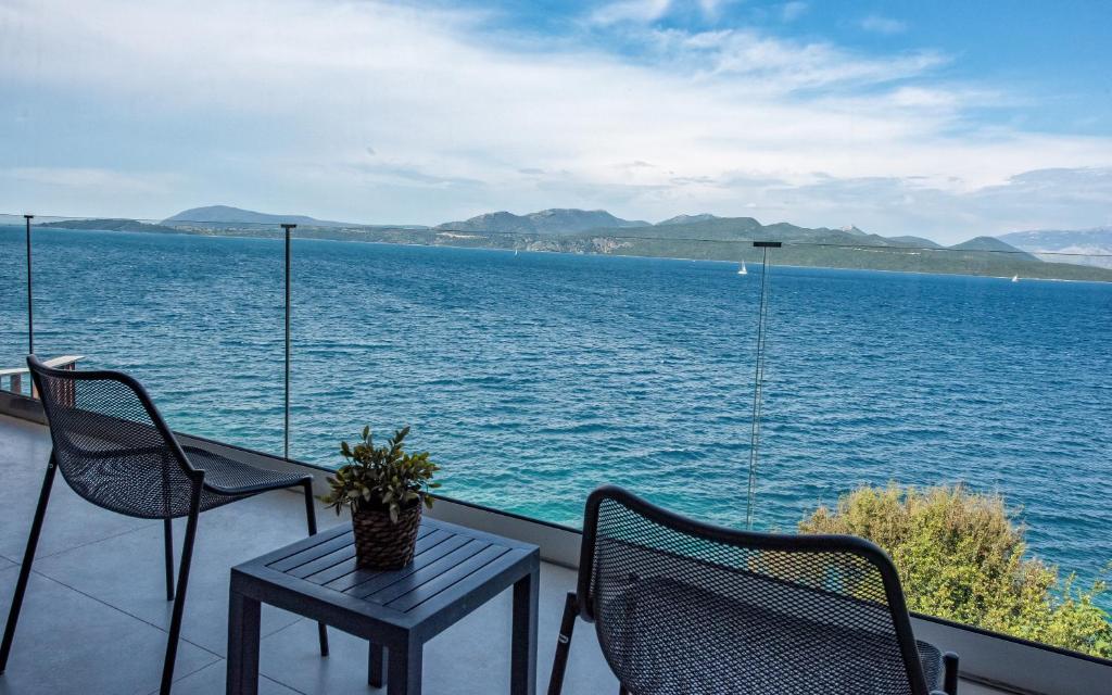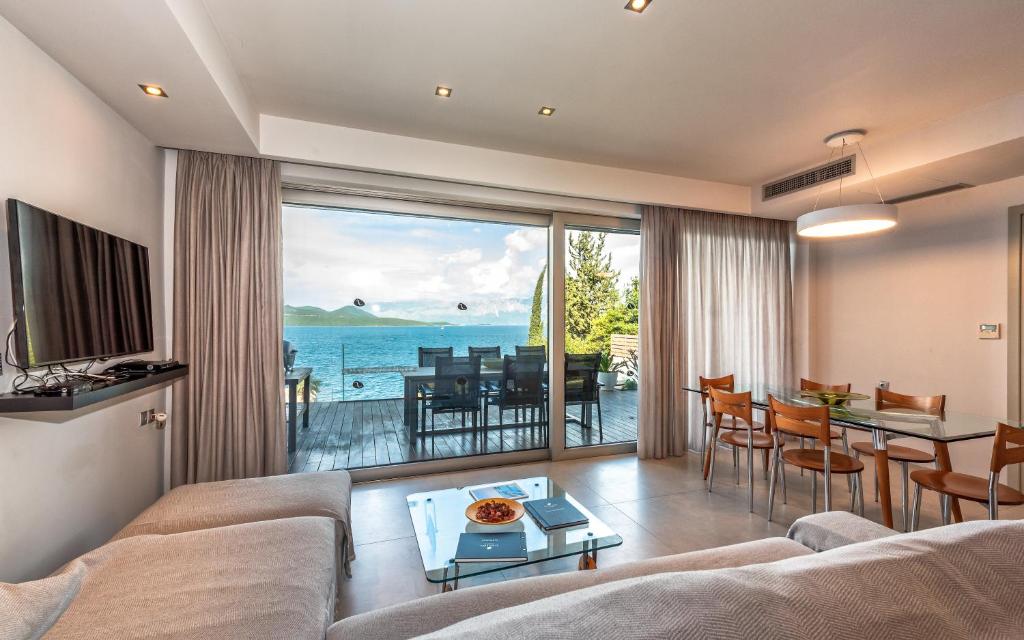 מתחם של 3 וילות חדשות יוקרתיות עם נוף פנורמי לים, ממוקמות באזור ניקיאנה Nikiana עם גישה לחוף הים דרך כמה מדרגות ומזח פרטי.