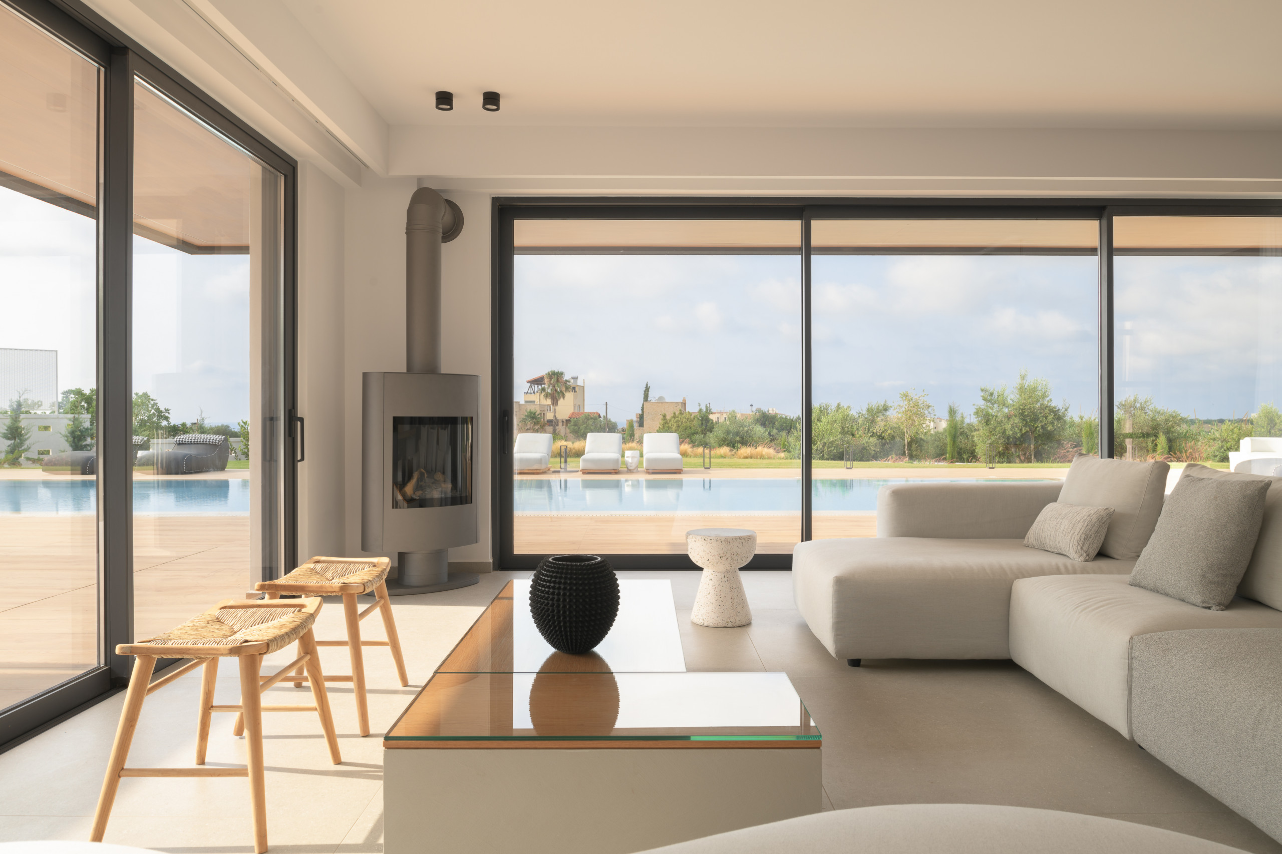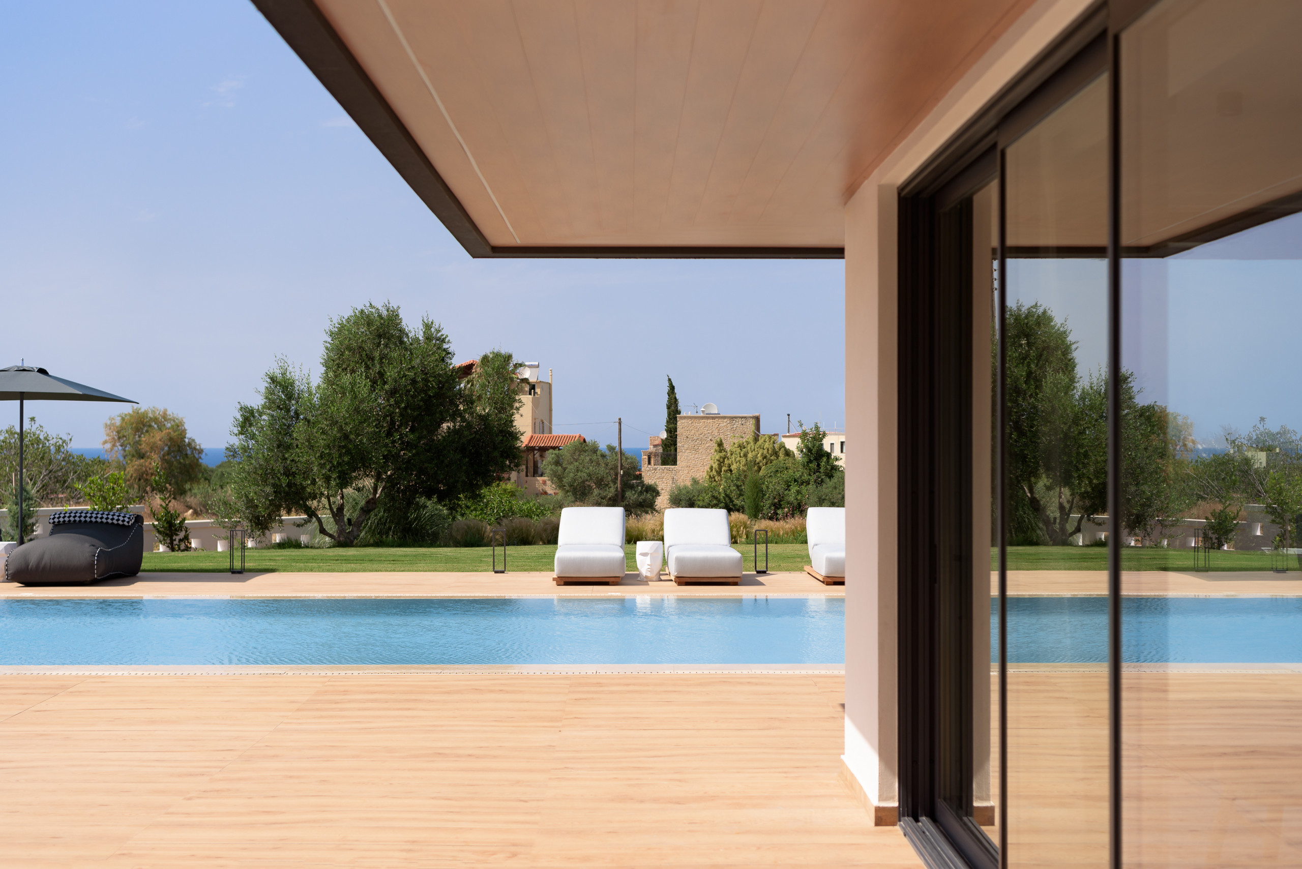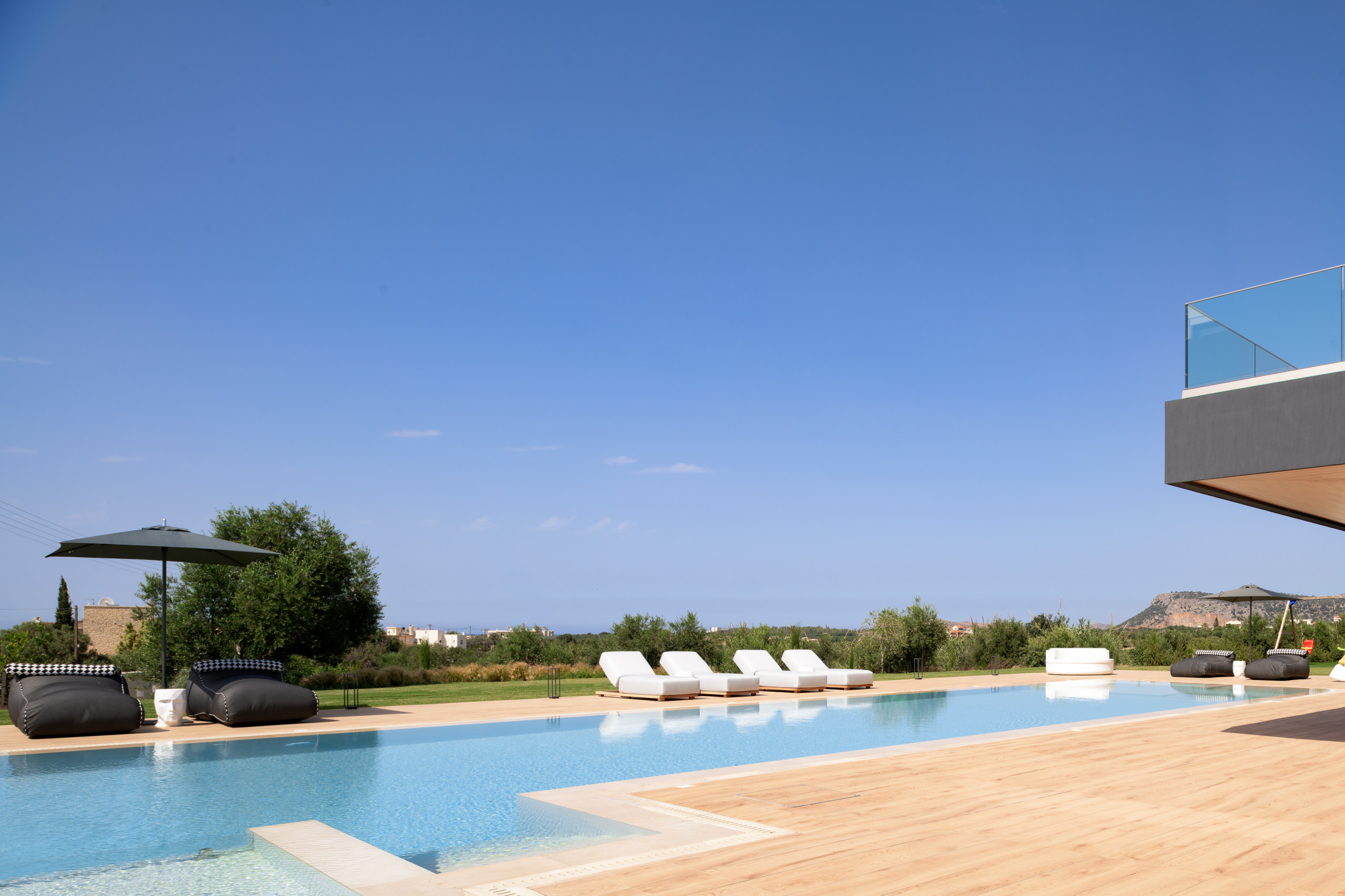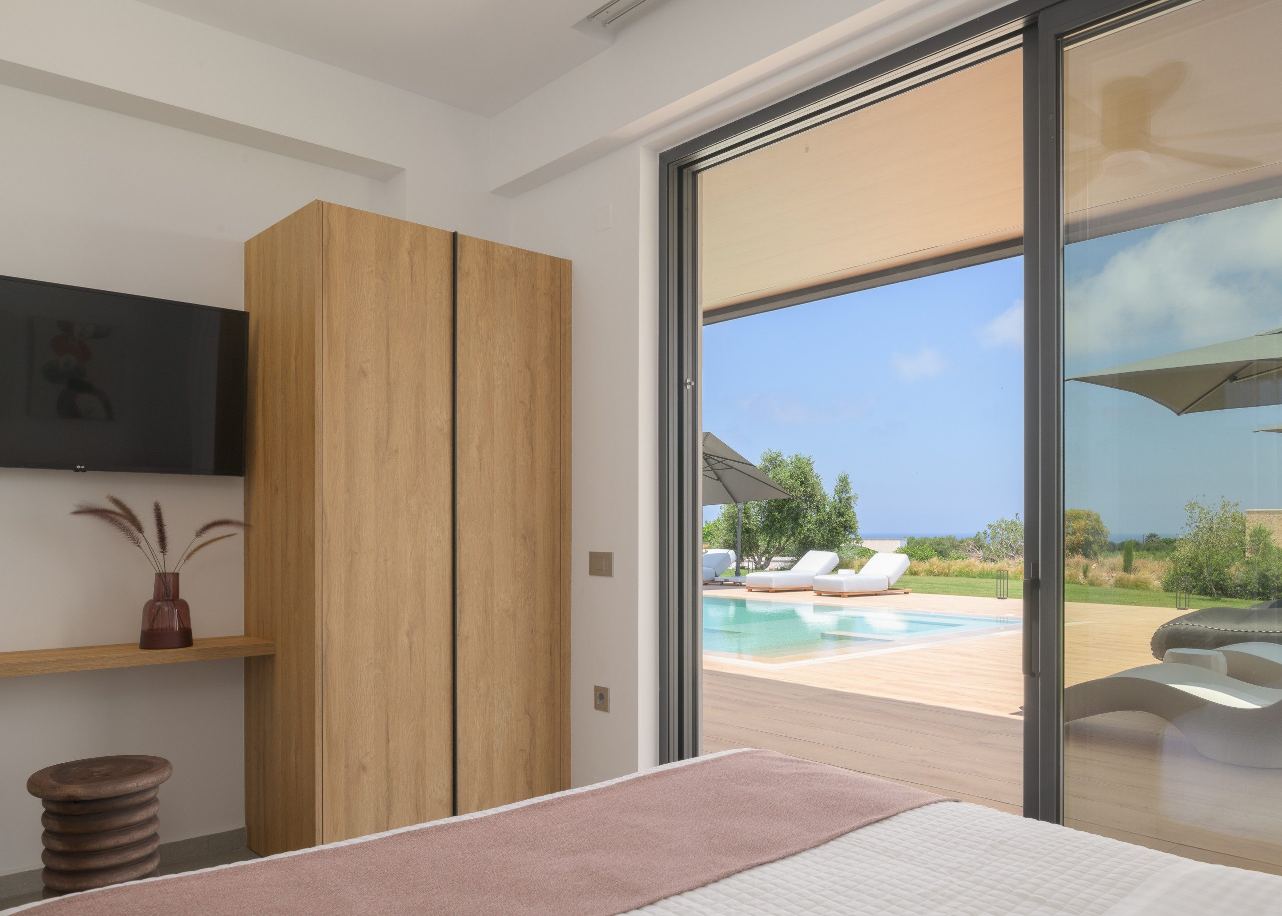 סלון עם טלוויזיה חכמה 55 אינץ' עם Netflix, חבילת כבלים בסיסית וגישה ישירה למרפסת • חדר שינה עם מיטת קווין סייז (1,60×2,00) ומיטת ספה נפתחת אחת (0,90×2,00), חדר רחצה צמוד עם מקלחת, דלת מרפסת עם נוף לבריכה, טלוויזיה חכמה 42אינץ ’• חדר שינה עם מיטת קינג סייז (1,80×2,00), חדר רחצה צמוד עם מקלחת, דלת מרפסת עם נוף לבריכה, טלוויזיה חכמה 42 ".