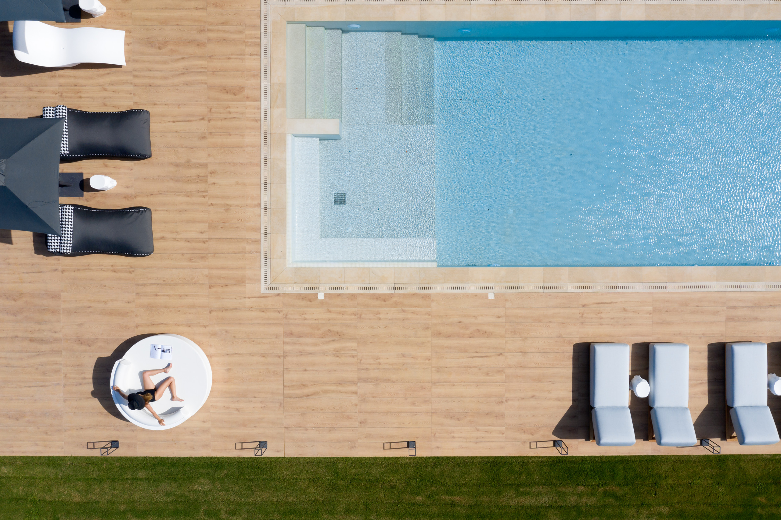 - בריכת השחייה הפרטית בגודל 120 מ"ר (עומקה של 1.40 מטר), עם ג'קוזי ספא מובנה (שישה מושבים) ותא מיוחד לבריכה לילדים (עומק 3×3 ו-0.50 מטר) .