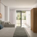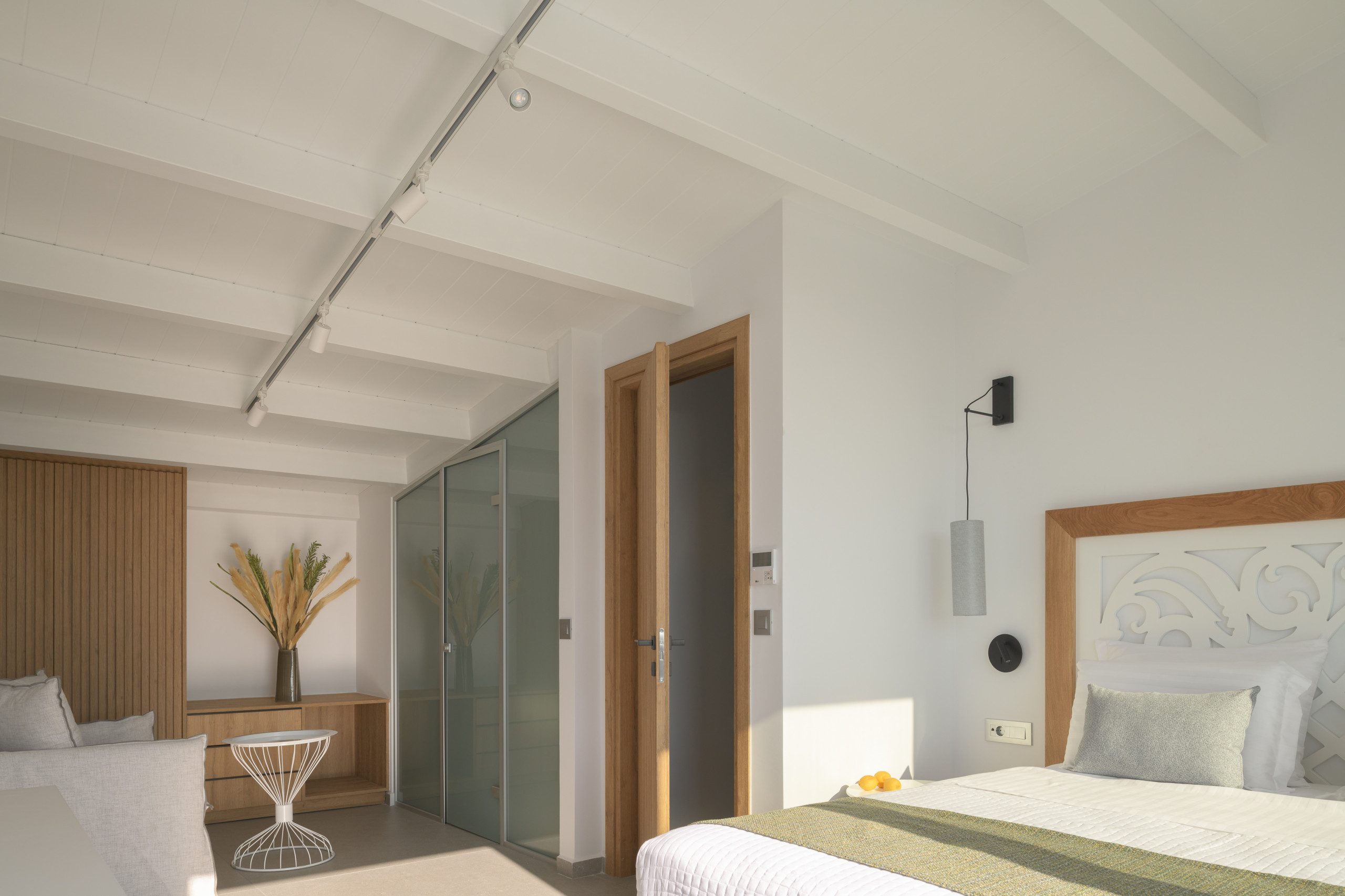 חדר שינה מסוג לופט עם מיטת קינג סייז (1,80×2,00) ומיטת ספה יחידה (0,90×2,00), חדר רחצה צמוד עם תא מקלחת, עם גישה למרפסת עם נוף לבריכה, טלוויזיה חכמה42אינץ '.