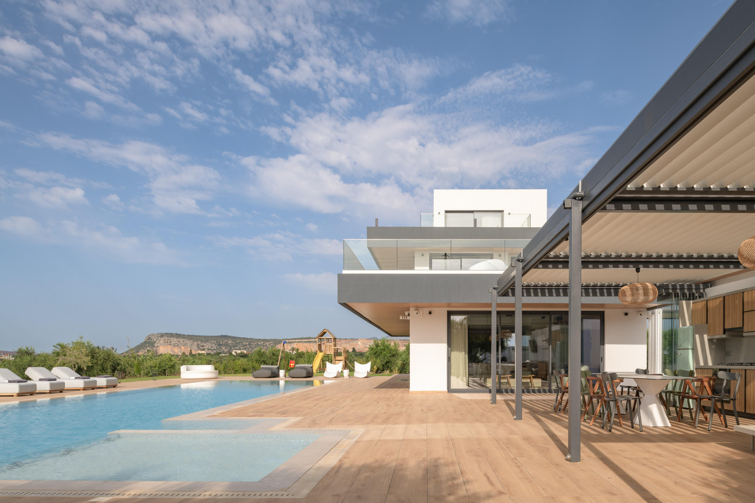 וילה עילית יוקרתית יוצאת דופן העיצוב הייחודי, החדשנות, ואיכות ממזגים מגורים יוקרתיים עם נוחות מושלמת לקבוצות גדולות.