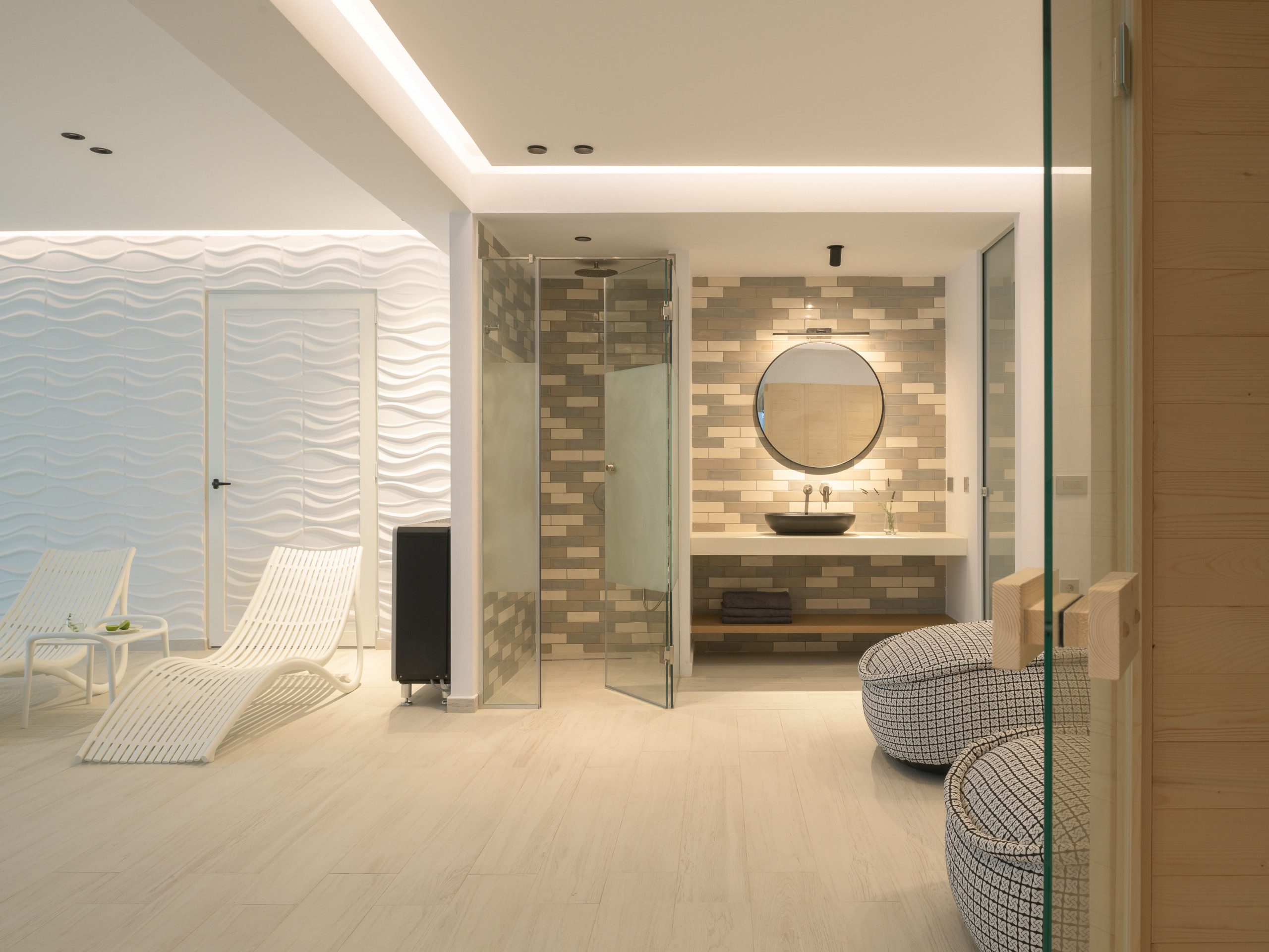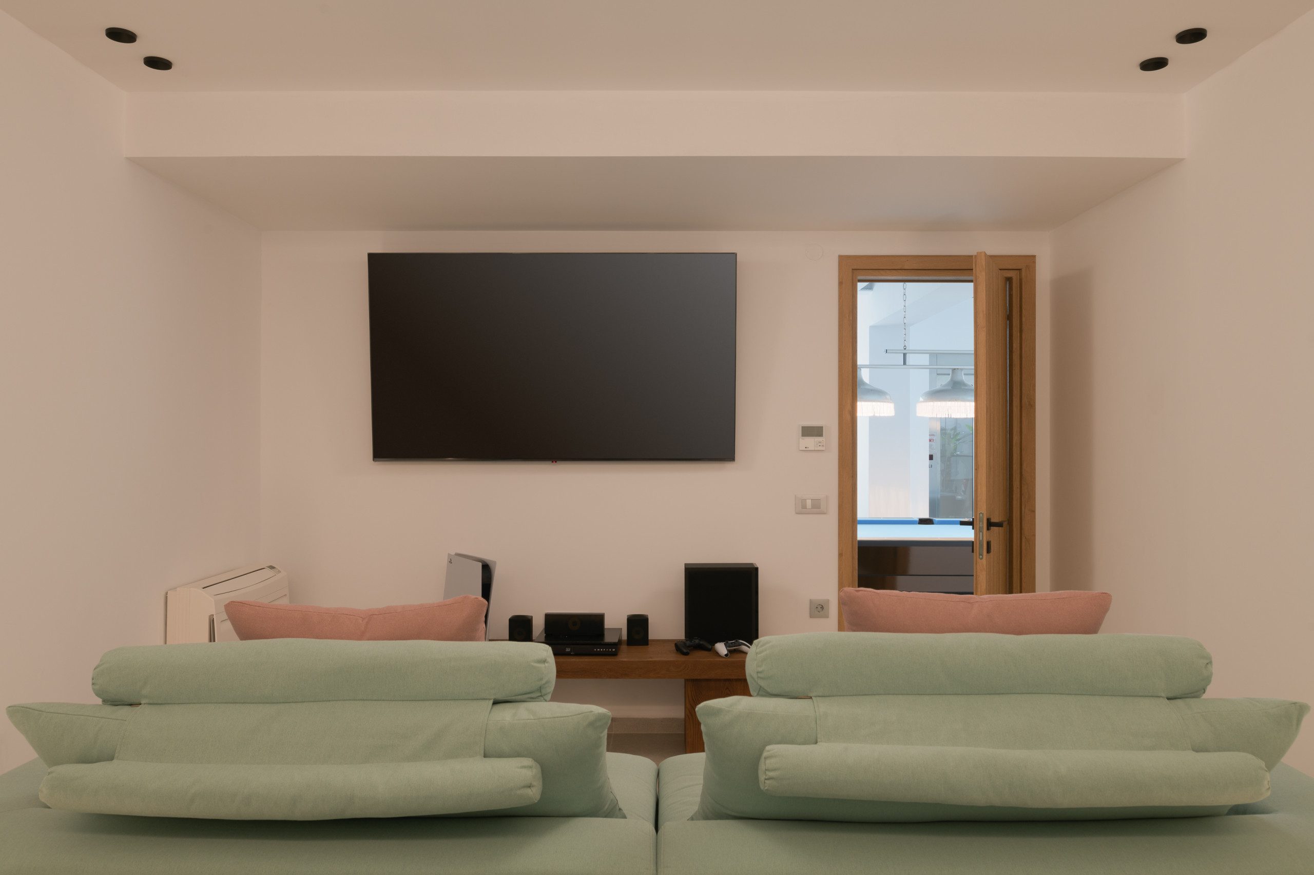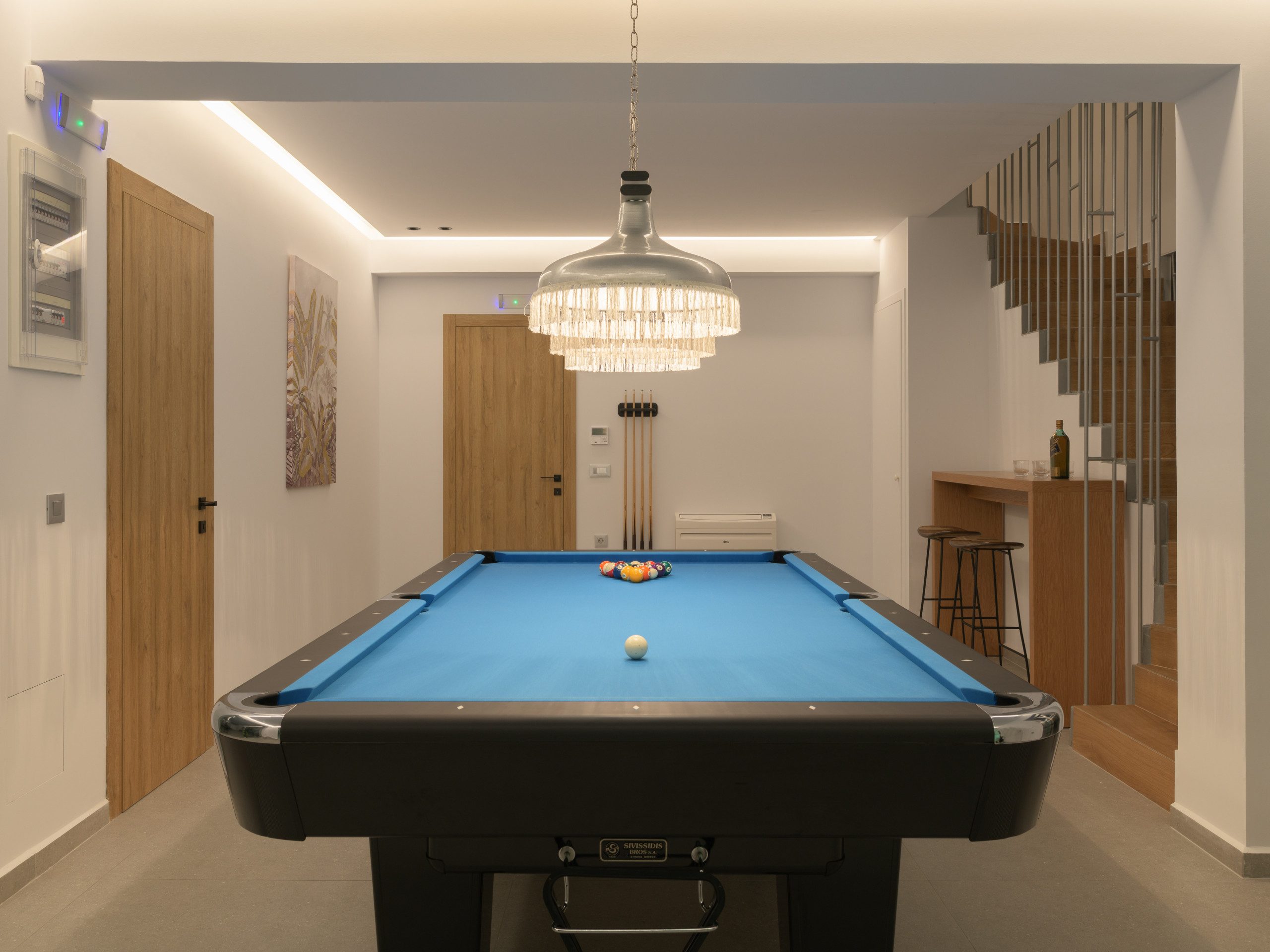 עם מיטת קינג סייז (1,80×2,00) וספה (0,90×2,00), חדר רחצה צמוד עם מקלחון, דלת מרפסת, גישה למרפסת בריכה דרך גרם מדרגות חיצוני, טלוויזיה חכמה 42אינץ ' • בריכה מחוממת מקורה בגודל 25 מ"ר (3,5×7 ו -140 מטר עומק) מעוטרת בג'קוזי ספא עם שישה מושבים מחוממים (טמפרטורת המים יכולה להגיע עד למקסימום 27 מעלות צלזיוס) • סאונה (קיבולת של 5 אורחים) • שולחן ביליארד (ביליארד) Athina Black, 9 רגל /עריכת סיור • ציוד כושר (כולל הליכון כושר, אופני כושר נייחים, מכונת כושר רב) עם טלוויזיה חכמה 55אינץ' • קולנוע ביתי עם טלוויזיה חכמה 80אינץ '(מערכת סאונד של דולבי סראונד) • חדר כביסה • חדר רחצה משותף עם מקלחון.