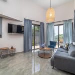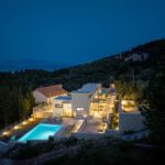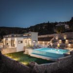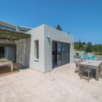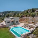 2 וילות חדשות ומודרניות שוכנות על צלע גבעה באזור ליגיה Lygia עם הנוף משקיף על גבעות ירוקות והכחול העמוק של הים היוני Ionian Sea.