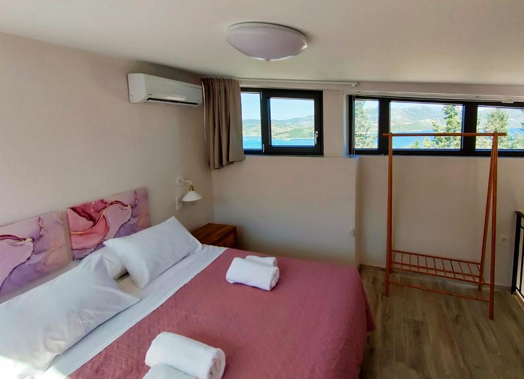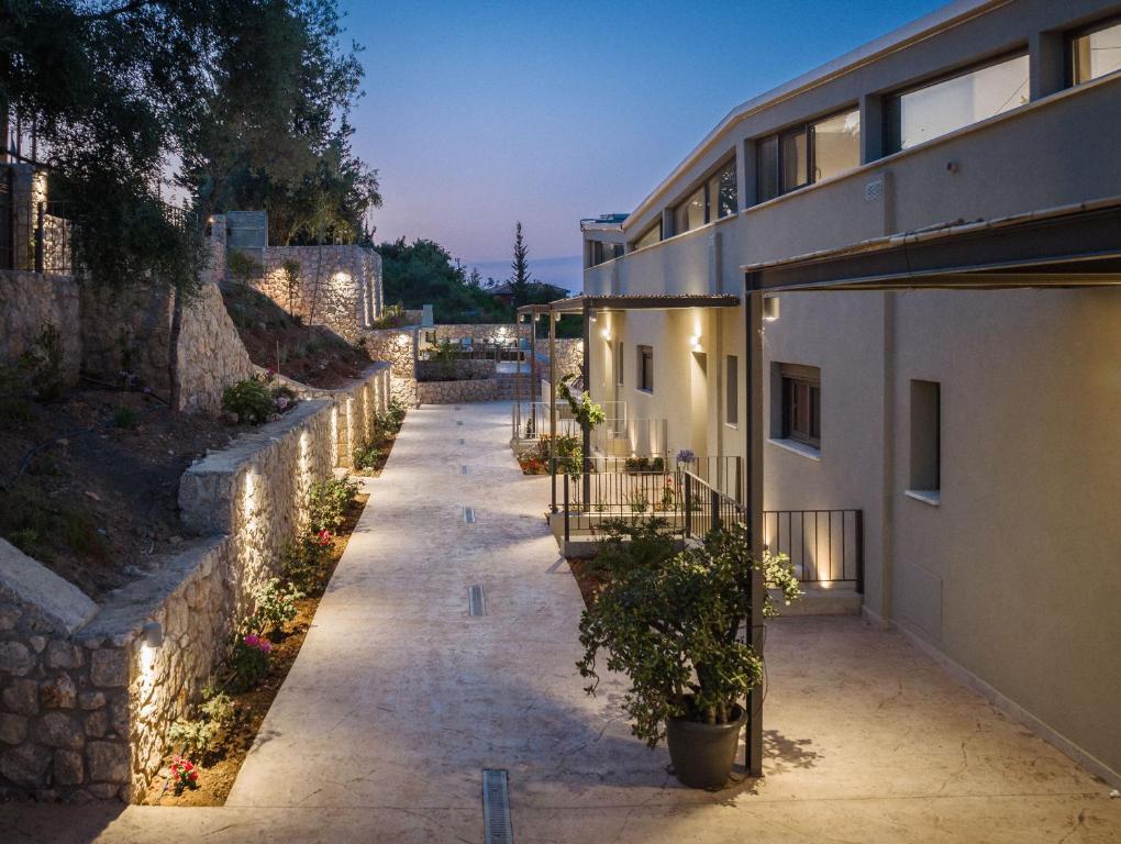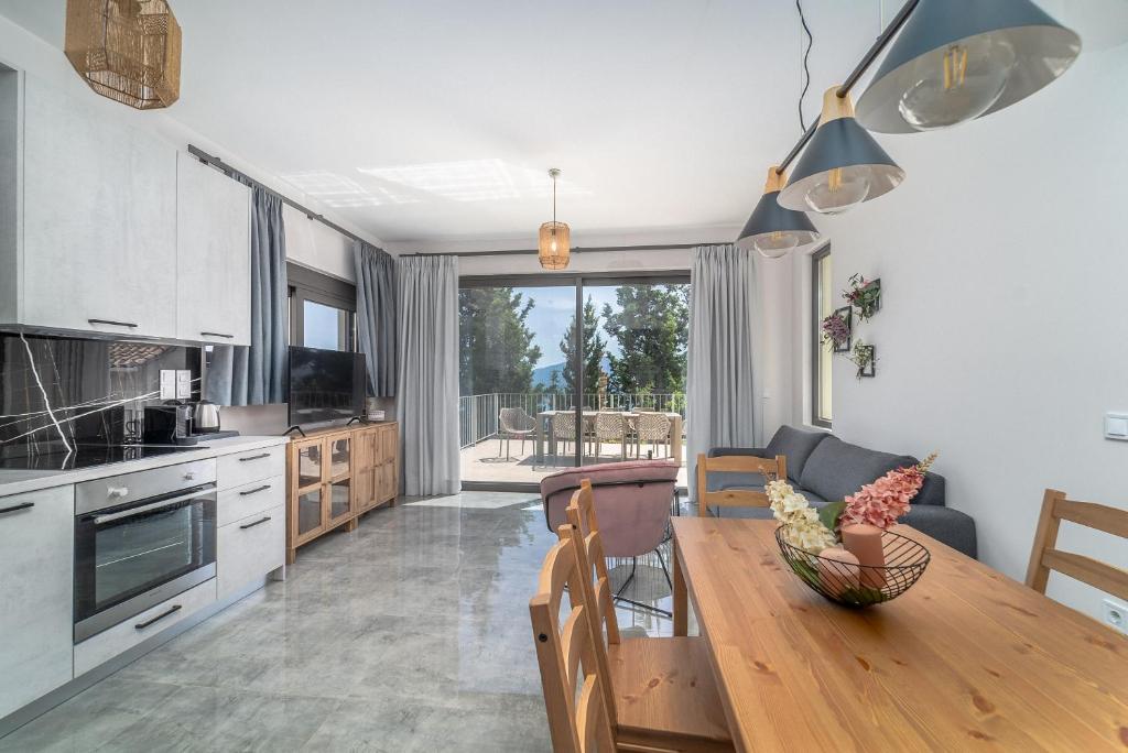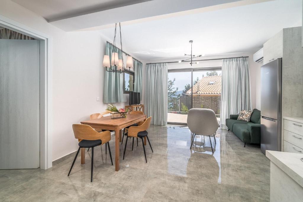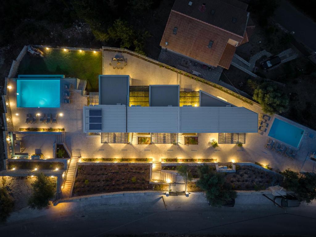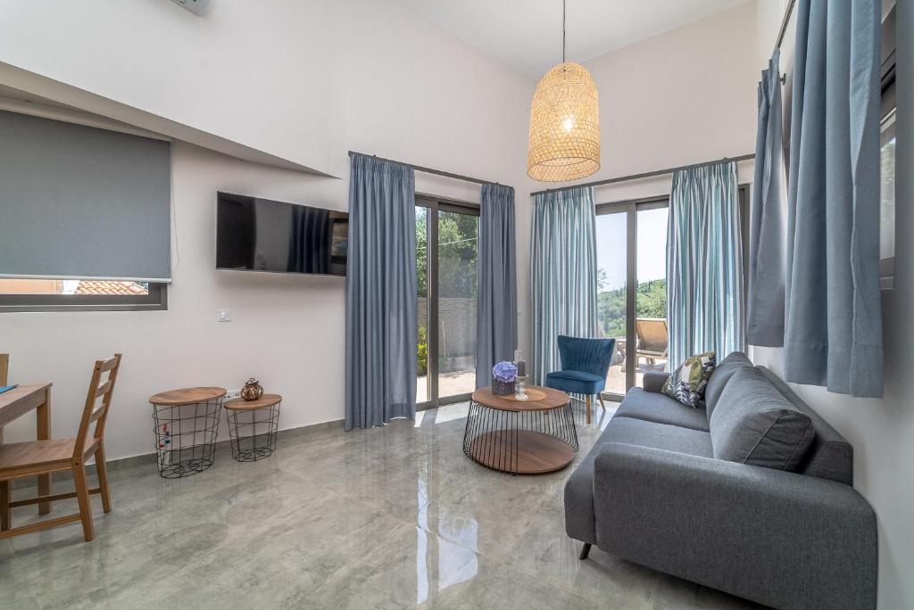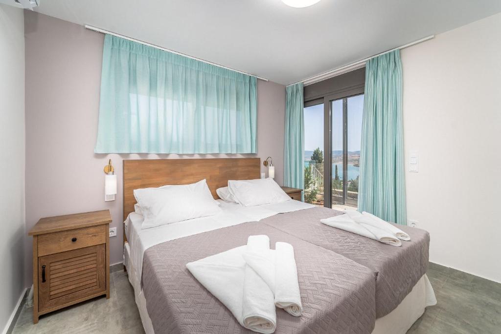 2 וילות חדשות ומודרניות שוכנות על צלע גבעה באזור ליגיה Lygia עם הנוף משקיף על גבעות ירוקות והכחול העמוק של הים היוני Ionian Sea.
