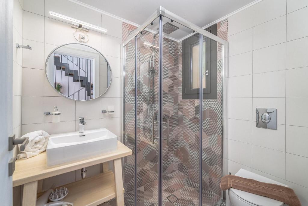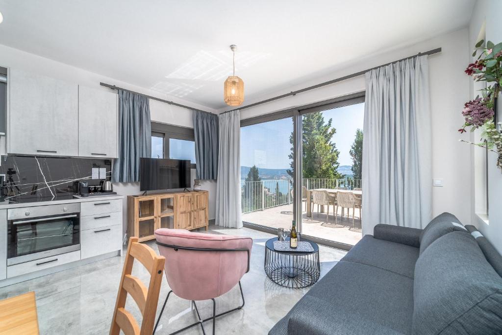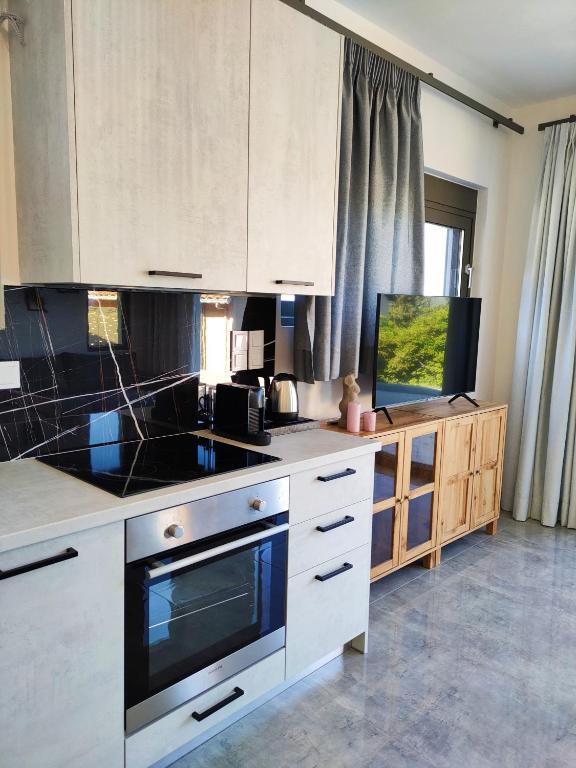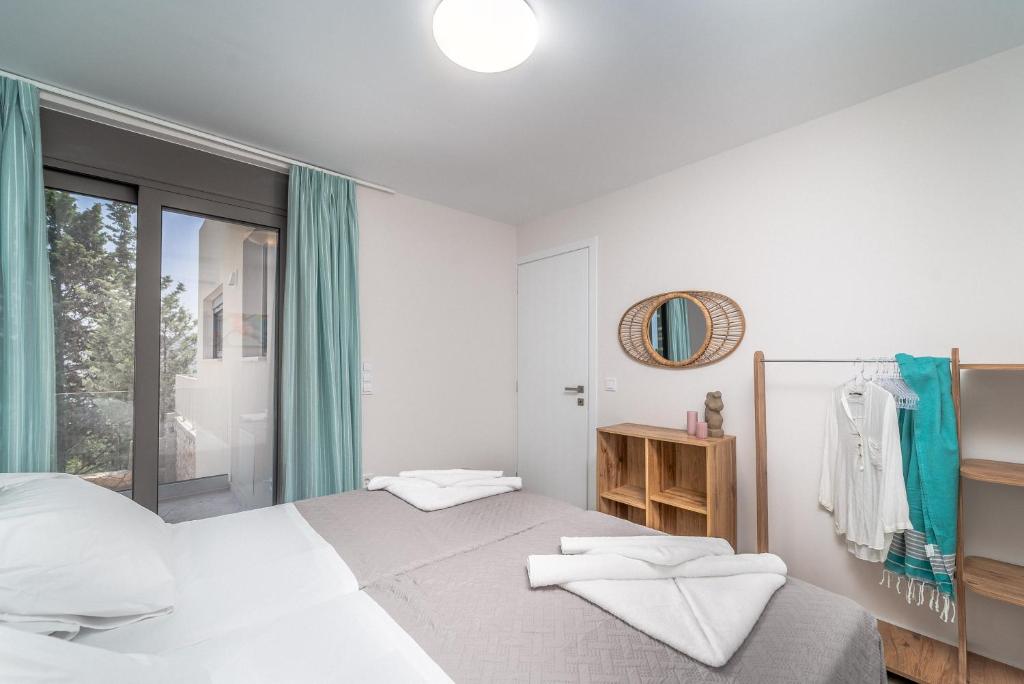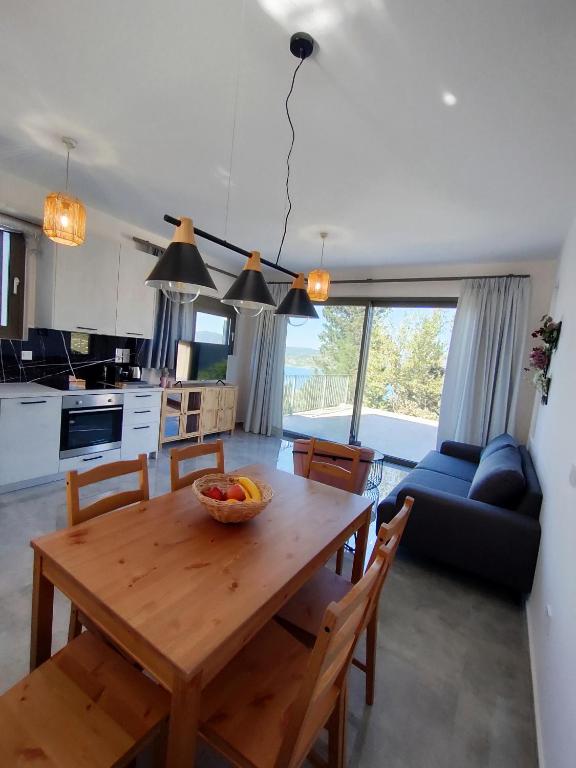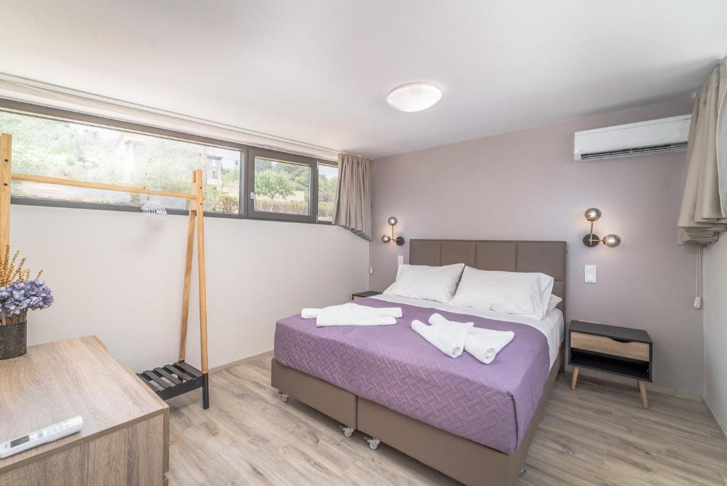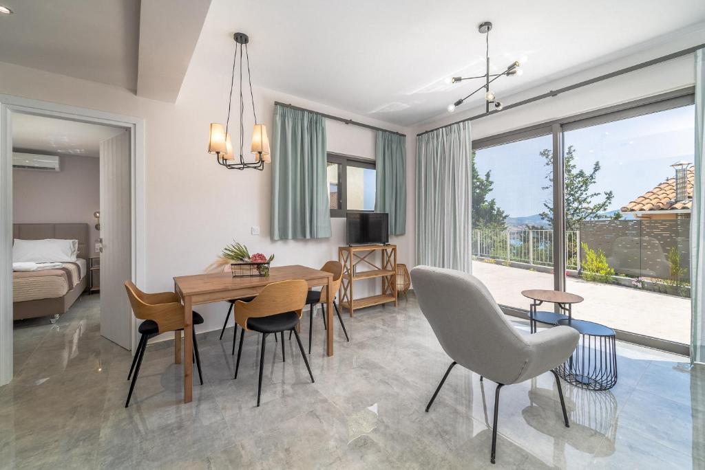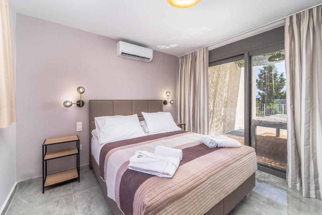 2 וילות חדשות ומודרניות שוכנות על צלע גבעה באזור ליגיה Lygia עם הנוף משקיף על גבעות ירוקות והכחול העמוק של הים היוני Ionian Sea.