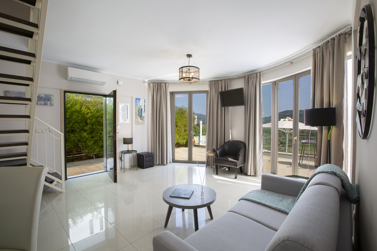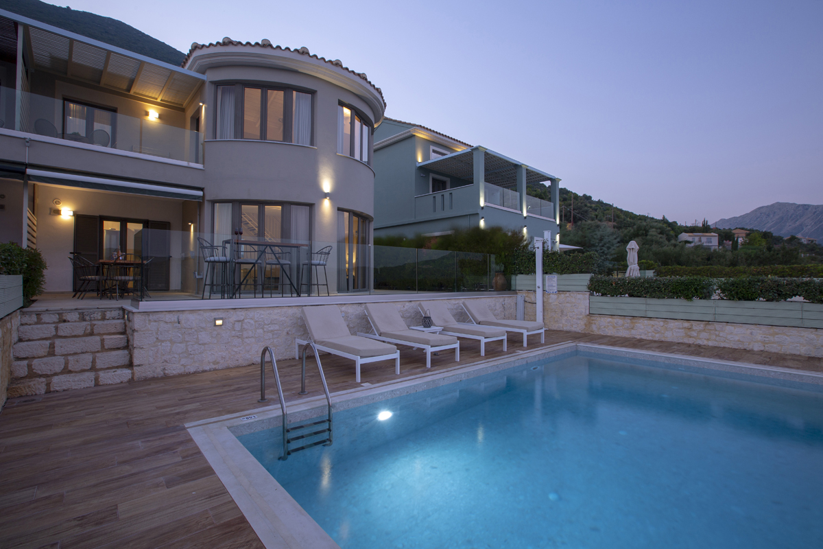 מתחם של 4 וילות סמוכות, מופרדות ופרטיות לחלוטין. שוכן על ההר מעל המפרץ בעיירה וסיליקי Vasiliki, עם נוף פנורמי מדהים לים היוני וההר הסובב אותה.