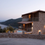 וילה חדשה מרווחת ומוארת בחוף הדרום מזרחי של האי לפקדה, משקיפה על המפרץ יפיפה ונוף מרהיב של הים היוני .