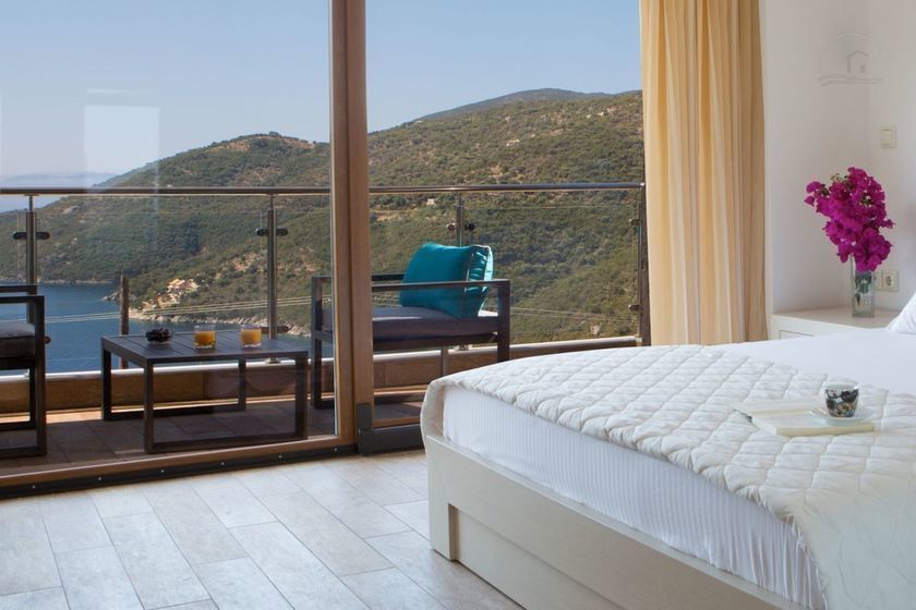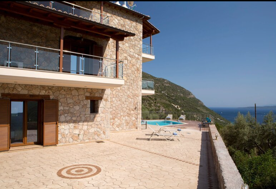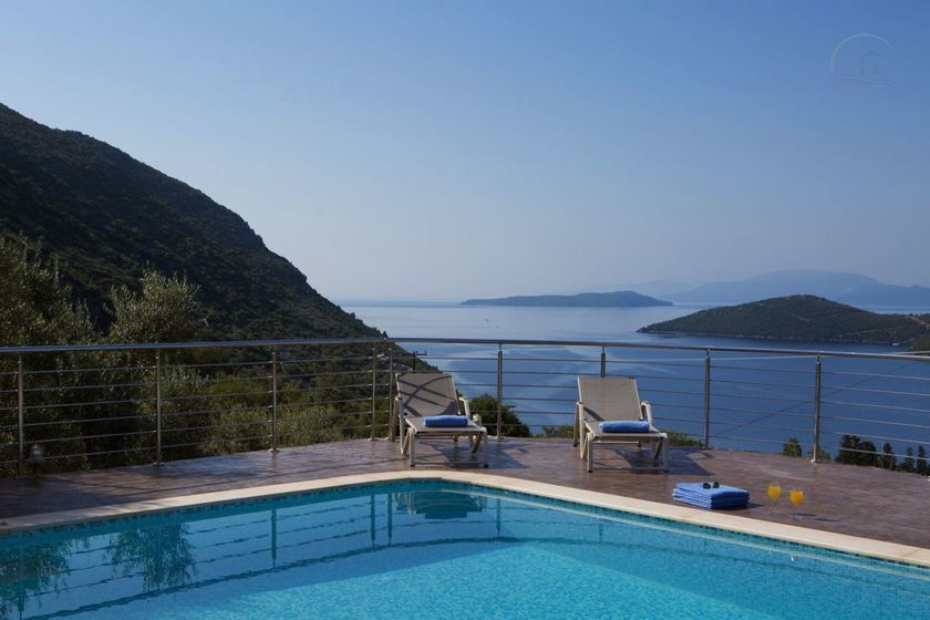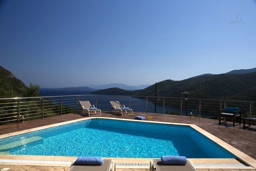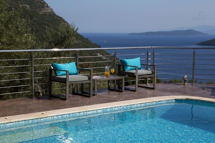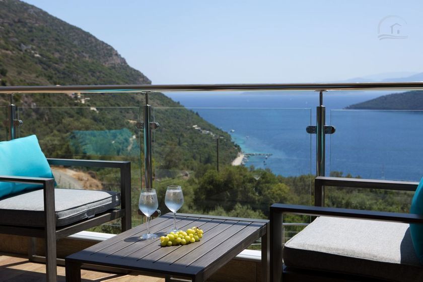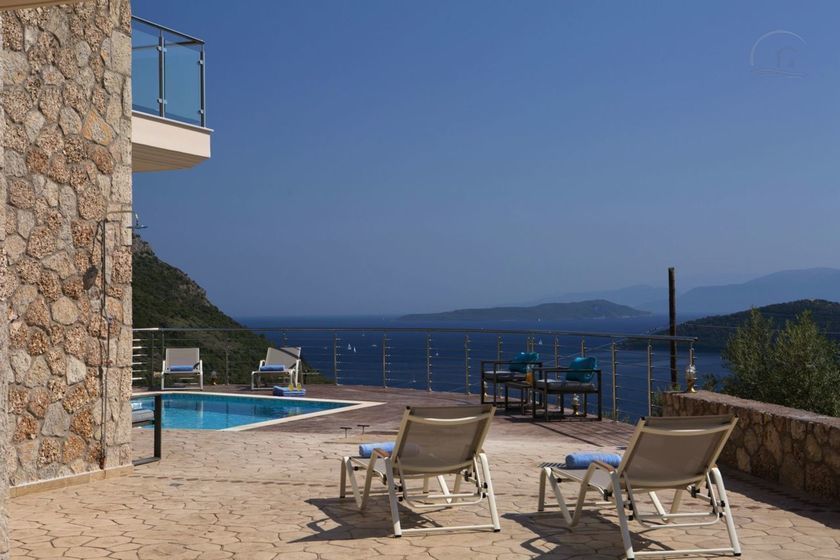 וילה חדשה מרווחת ומוארת בחוף הדרום מזרחי של האי לפקדה, משקיפה על המפרץ יפיפה ונוף מרהיב של הים היוני .