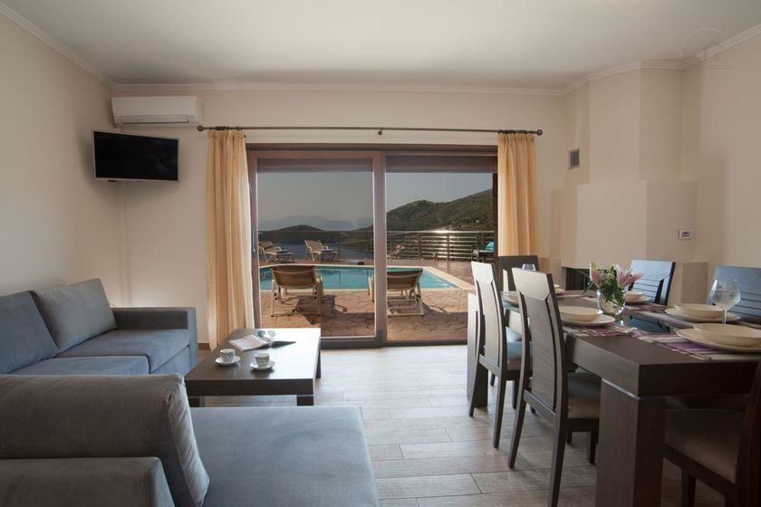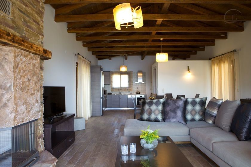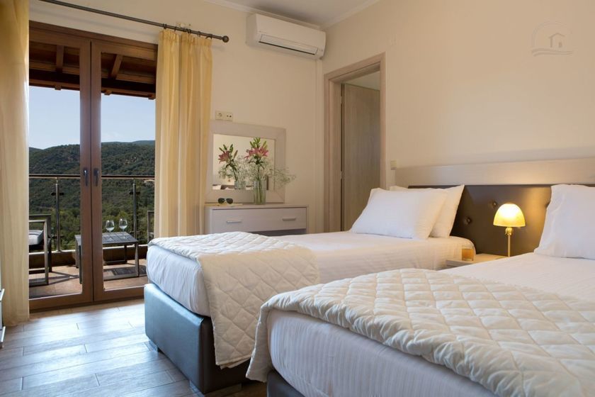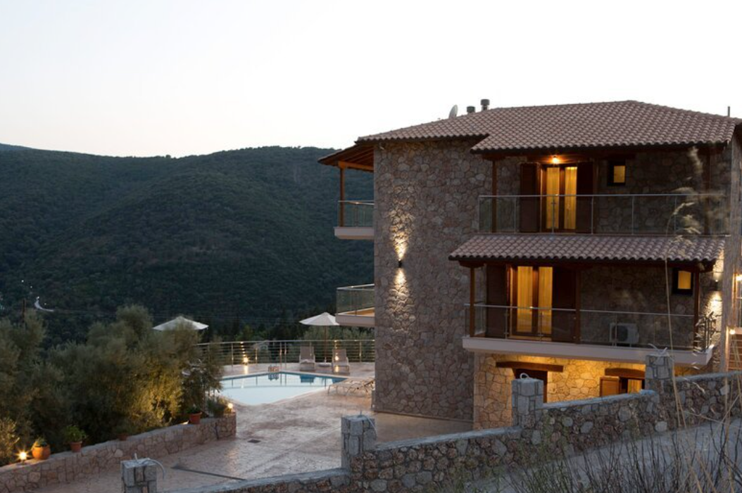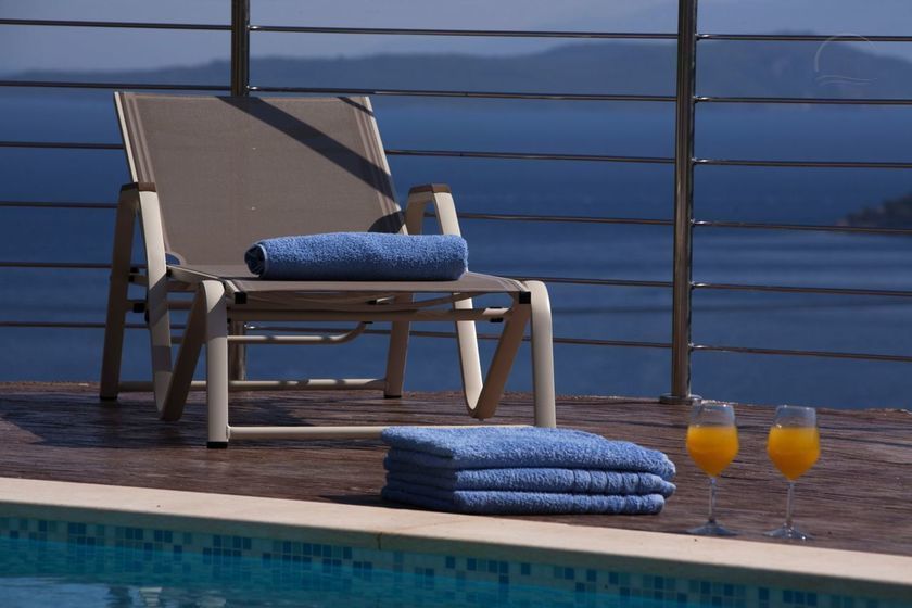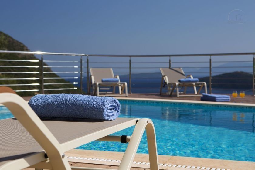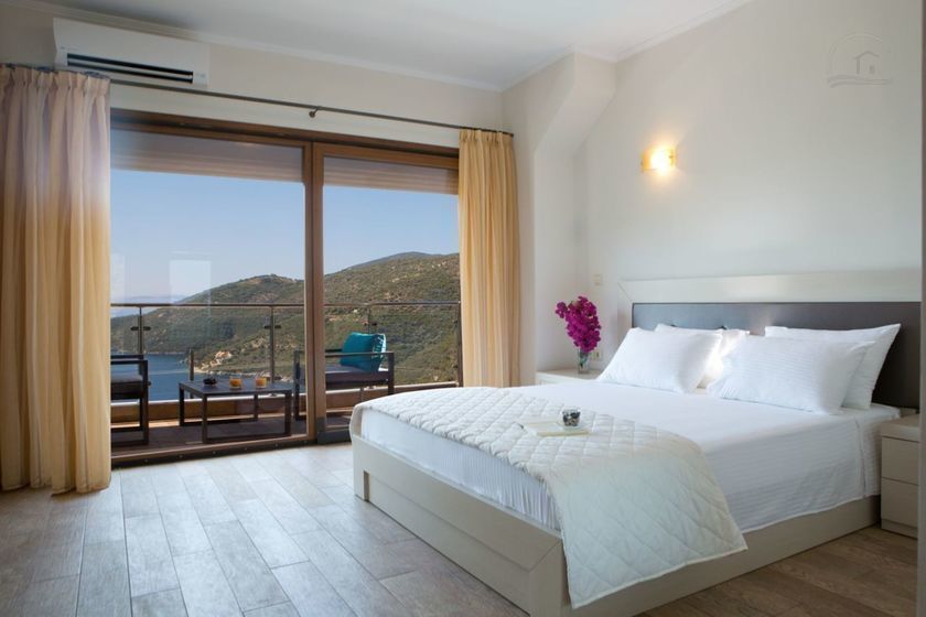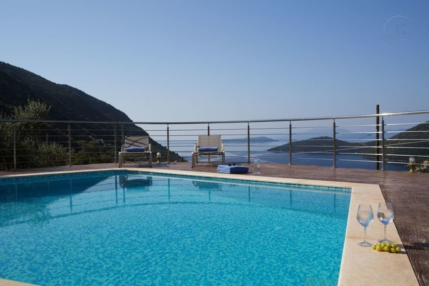 וילה חדשה מרווחת ומוארת בחוף הדרום מזרחי של האי לפקדה, משקיפה על המפרץ יפיפה ונוף מרהיב של הים היוני .