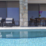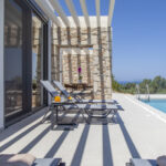 האזור חיצוני של הוילות מכבד את הארכיטקטורה היוונית וחומרים המשלבים אלמנטים מאבן ועץ תוך התחשבות באיכות ונוחות.