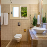 קומת הקרקע התחתונה מכילה: חדר שינה זוגי אחד עם אמבטיה צמודה וחדר שינה טווין עם חדר רחצה צמוד. לשני חדרי השינה יש גישה ישירה לגינה.
