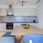 קומת קרקע: חלל אזור מגורים פתוח עם פינת אוכל ומטבח מאובזר