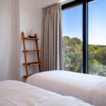 קומה עליונה: חדר שינה עם מיטה זוגית ו עוד 2 חדרי שינה עם מיטות טווין הניתנות להפרדה. כל אחד מחדרי השינה עם יציאה למרפסת.