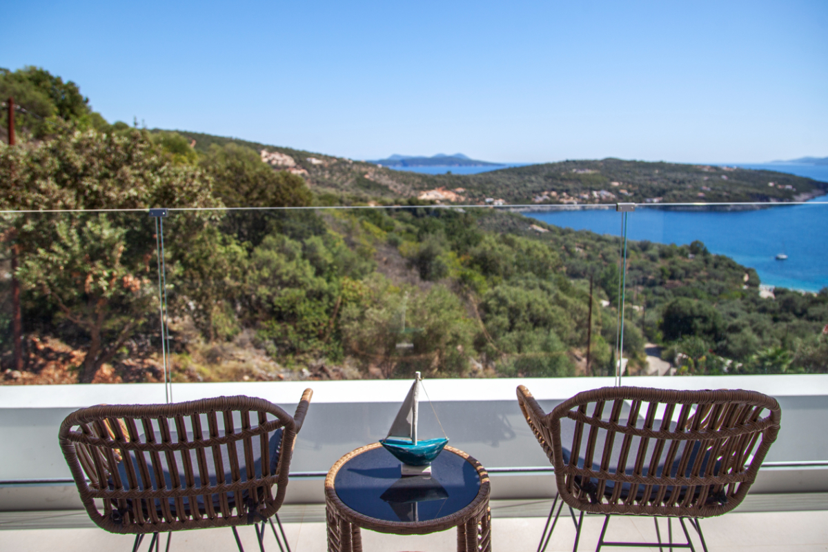 וילה מודרנית עם פרטיות מוחלטת שוכנת בגבעות הכפר Ammouso משקיפה לנוף המדהים של הים היוני,