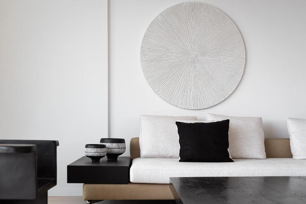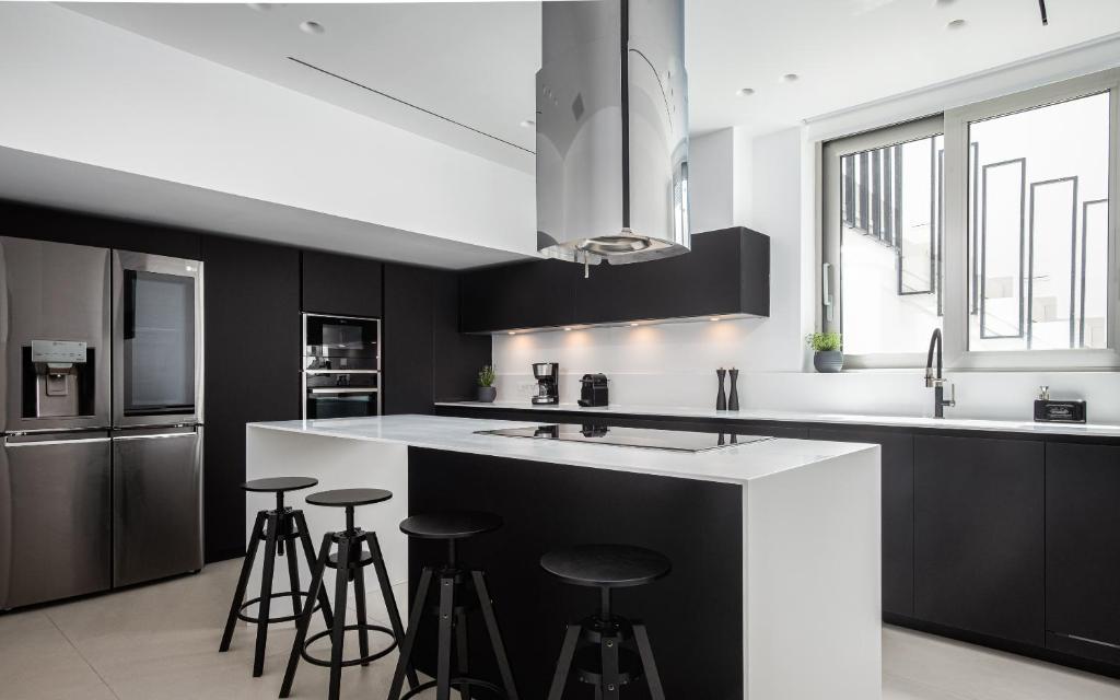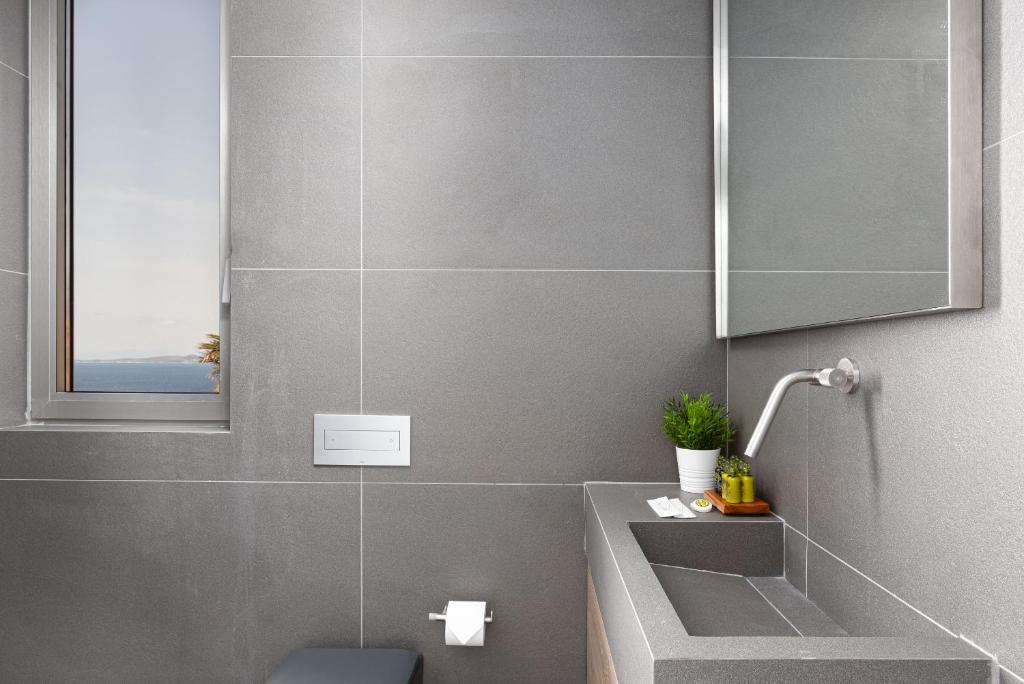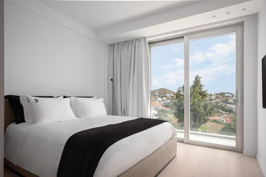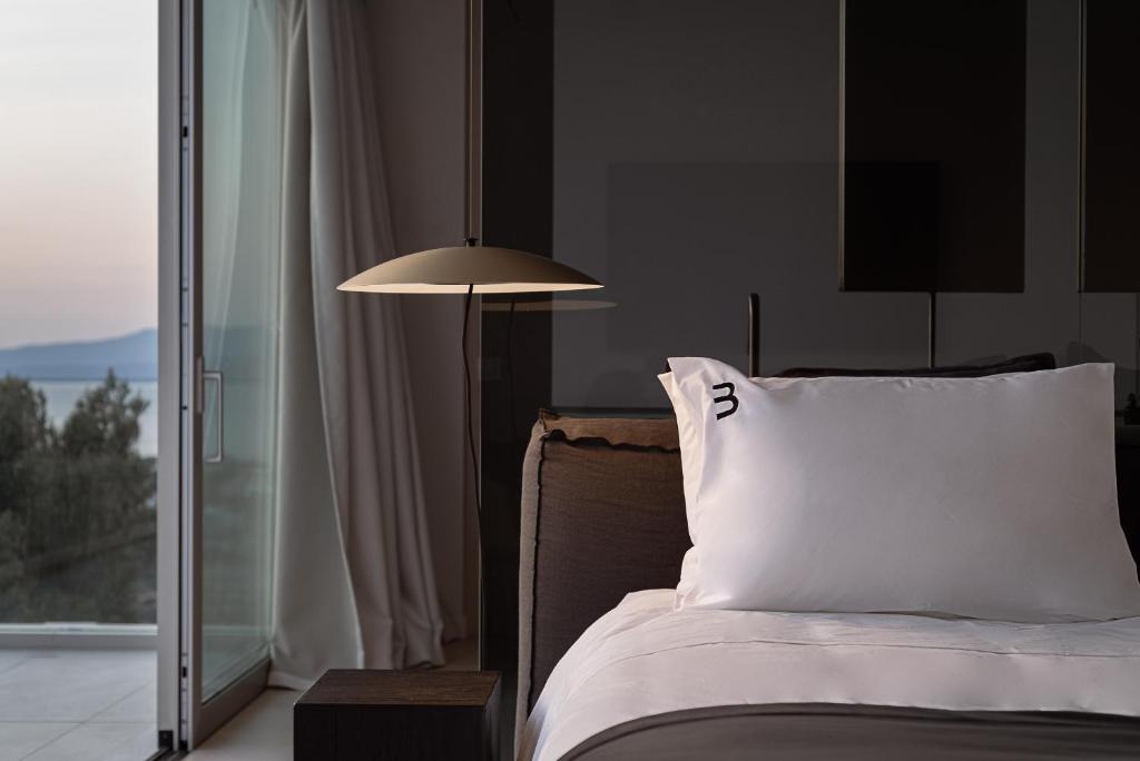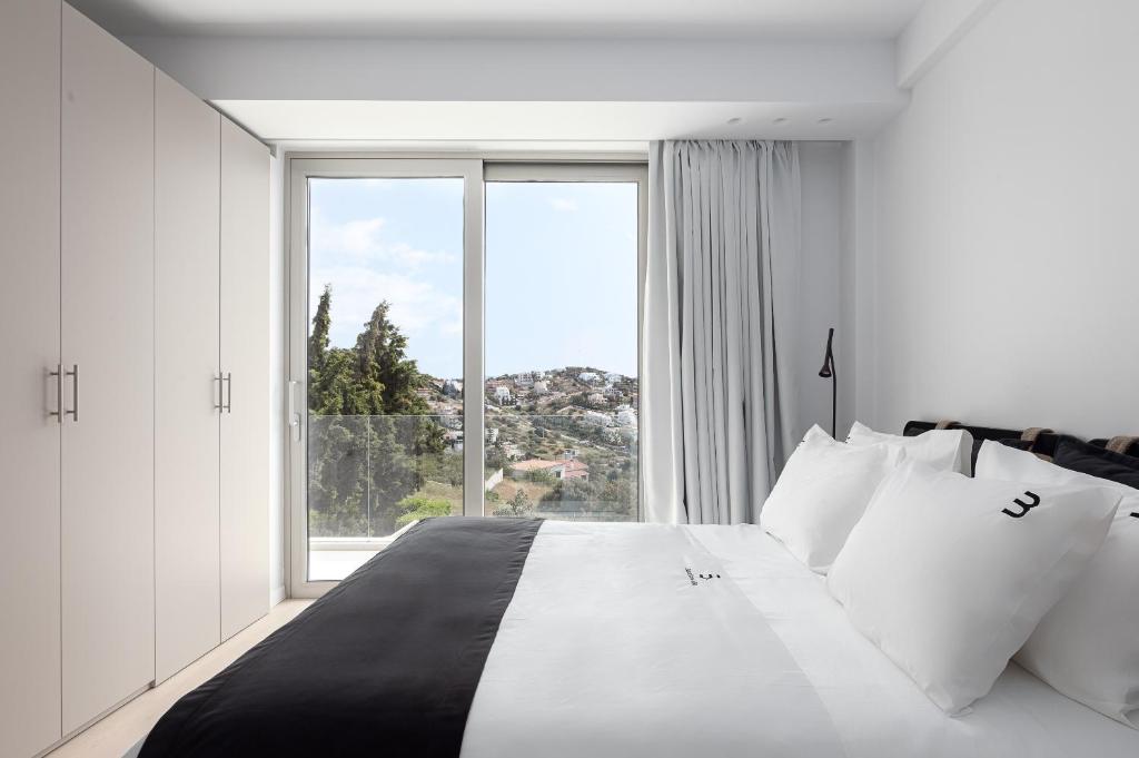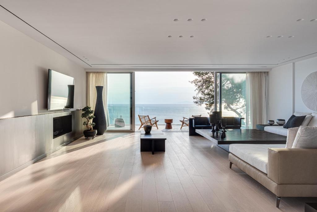וילה יוקרתית, בעיצוב מינימליסטי ושיקי משקיפה על נופים אינסופיים של הכחול האגאי,