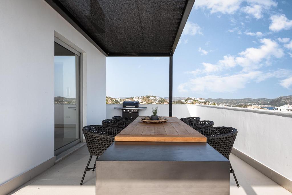 מפלס עליון: מרפסת גדולה עם פרגולה נופים פנורמיים של 360 מעלות. ומטבח נוסף.