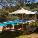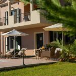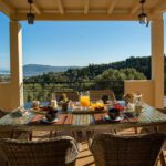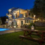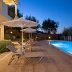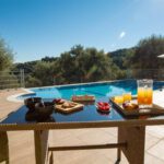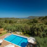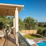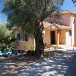 The villa is part of a complex of two private villas separated by a high fence and olive trees.