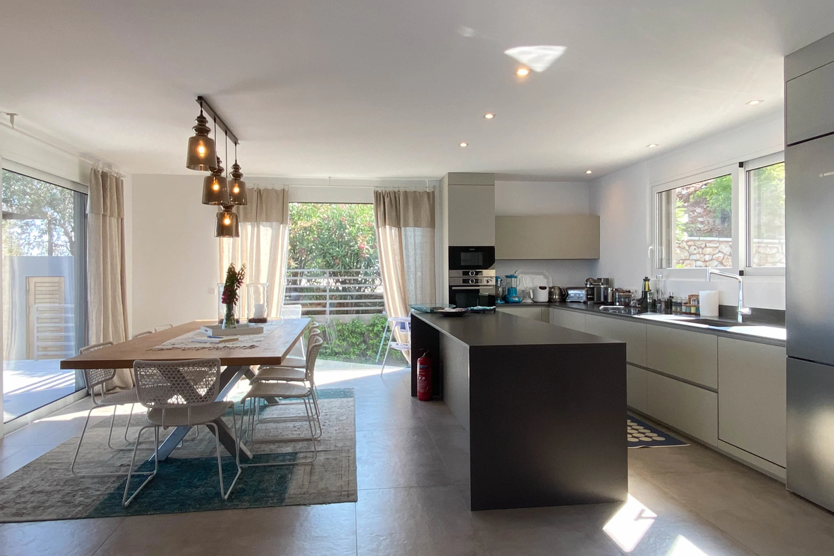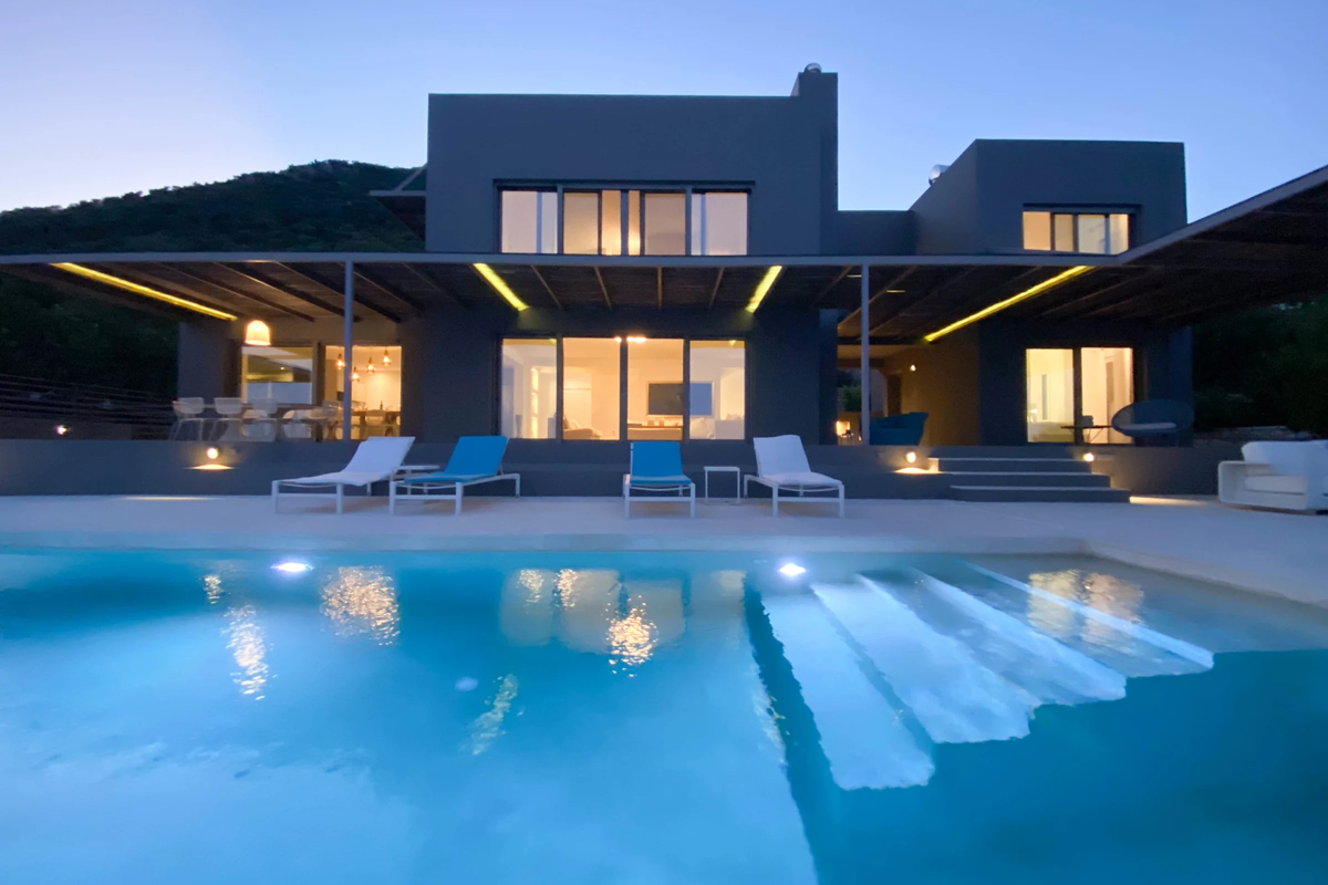 הארכיטקטורה האלגנטית של וילה היא עיצוב מודרני הרמוני. משתרעת על שטח של 450 מ"ר, 6 חדרי שינה, גישה פרטית לים ובריכה עם שפת אינסוף. חדר קולנוע ומטבח מאובזר.
