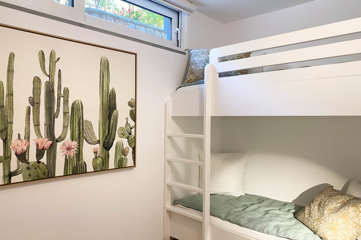 1 חדר מיטת ילדים אחד עם 2 מיטות קומותיים.