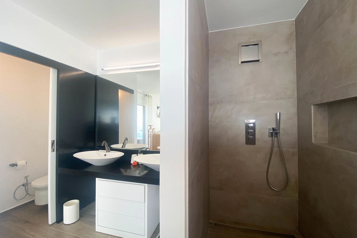 חדרי רחצה מלאים. 3 מהם עם נוף מדהים לים ו-2 עם נוף לגן,.