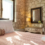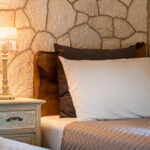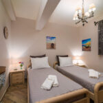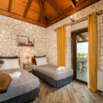 בקומה הראשונה חדר שינה עם מיטה זוגית, מרפסת,שולחן לשני אנשים, ונוף לעיר לפקדה ומשקיף על גינת הווילה. בחדר השינה השני שתי מיטות יחיד, מרפסת,שולחן לשני אנשים. חדר השינה השלישי כולל מיטה זוגית אך אין לו מרפסת, גם חדר רחצה גדול עם אמבטיה.
