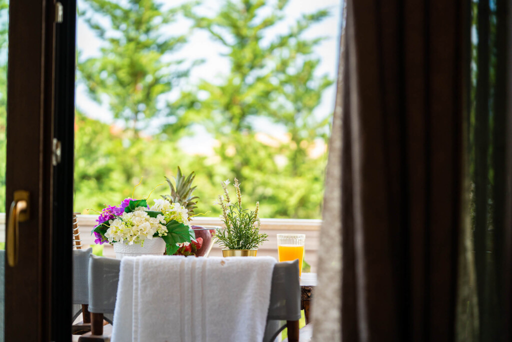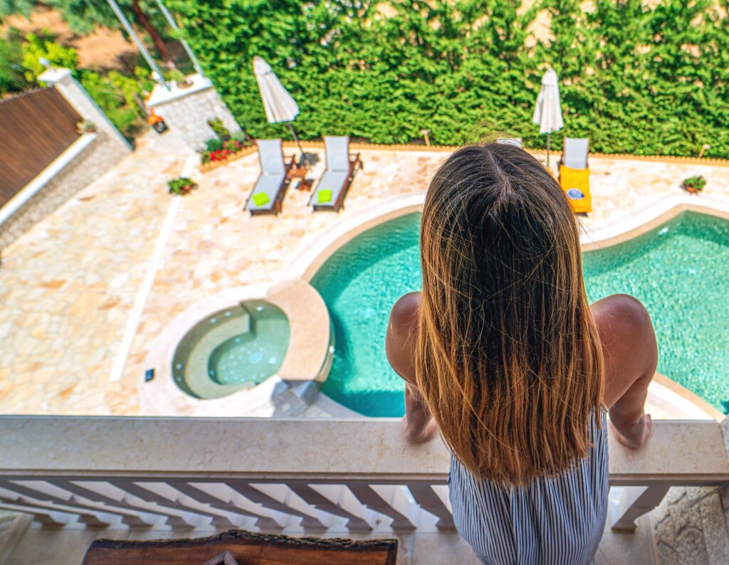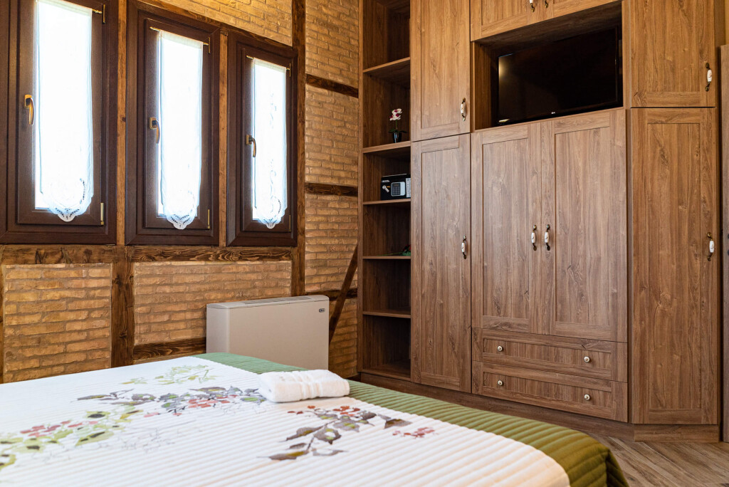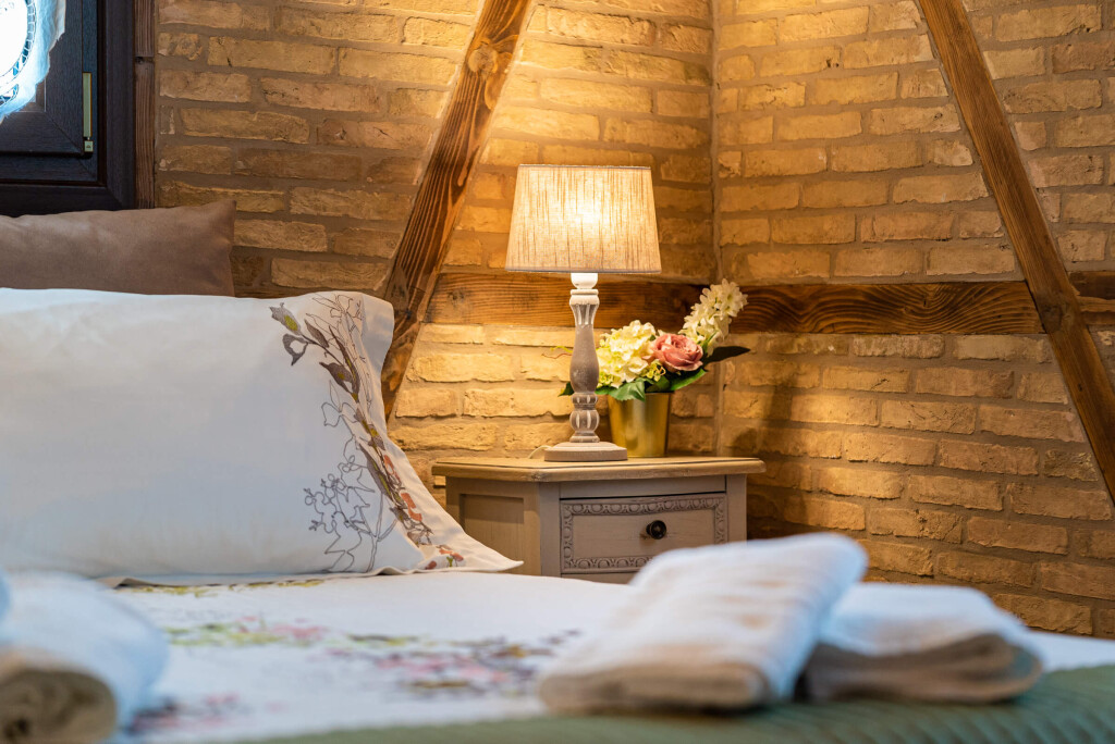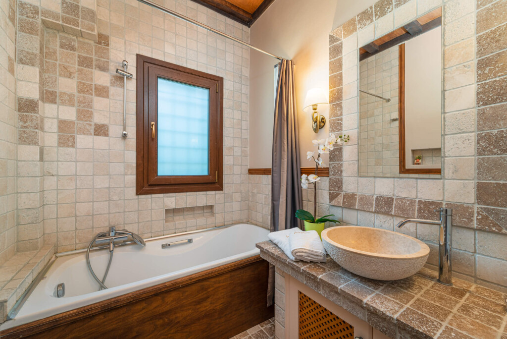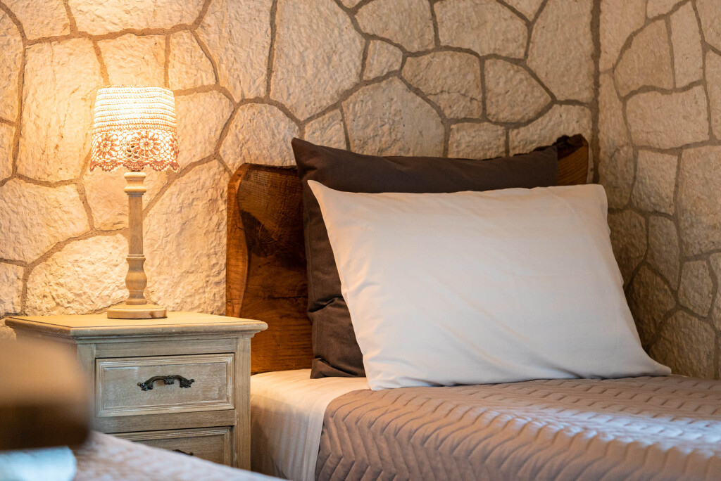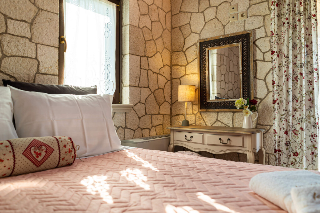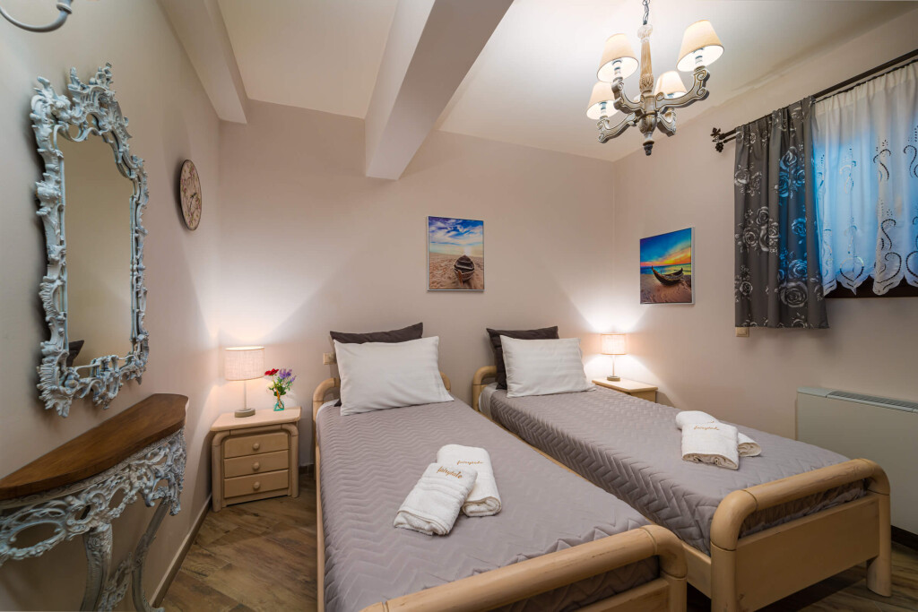 בקומה הראשונה חדר שינה עם מיטה זוגית, מרפסת,שולחן לשני אנשים, ונוף לעיר לפקדה ומשקיף על גינת הווילה. בחדר השינה השני שתי מיטות יחיד, מרפסת,שולחן לשני אנשים. חדר השינה השלישי כולל מיטה זוגית אך אין לו מרפסת, גם חדר רחצה גדול עם אמבטיה.