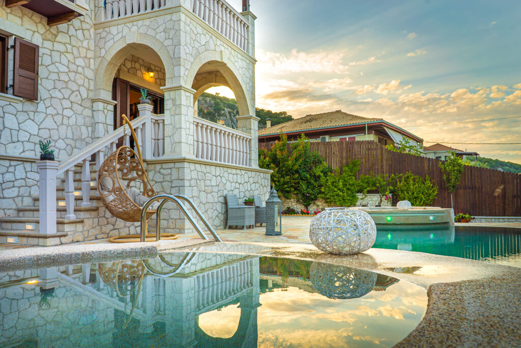 וילה אלגנטית שנבנתה על פי הארכיטקטורה המסורתית של האי תוך שימוש באלמנטים דקורטיביים מודרניים שוכנת בחלק הצפוני של האי לפקדה ומשקיפה על נוף מרהיב של העיר לפקדה Lefkada Town .