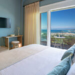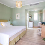 • חדר זוגי עם מטבחון ובו מקרר קטן ומכונת אספרסו, חדר מקלחת ושירותים צמודים ויציאה למרפסת פרטית עם פינת ישיבה.