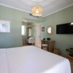 • חדר זוגי עם חדר מקלחת ושירותים צמודים ויציאה למרפסת פרטית עם פינת ישיבה.