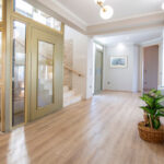 אזור מגורים מרווח בחלל פתוח מלא באור טבעי המוביל לגינה הגדולה ולבריכת השחייה.