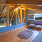 באמצעות מעלית פנימית או גרם מדרגות, מגיעים לקומה העליונה ובה 2 חדרי שינה שלכל אחד מהחדרים מטבחון ובו מקרר קטן ומכונת אספרסו ולופט פנימי מעץ הנגיד באמצעות מדרגות עץ ובו 2 מזרוני יחיד עם ואפשרות ללינה של 2 ילדים: