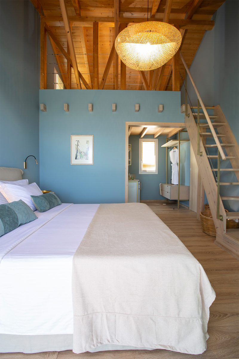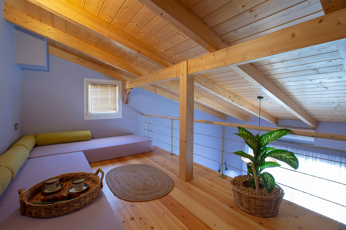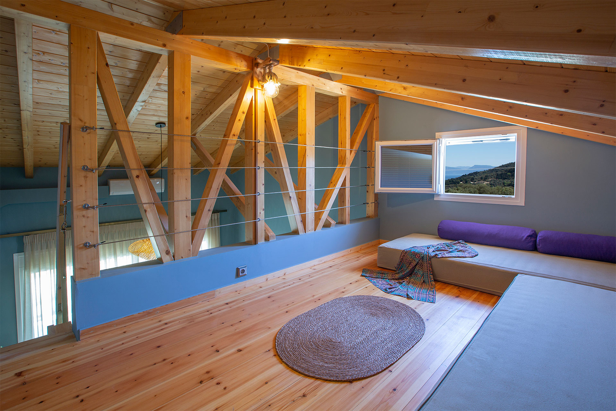 באמצעות מעלית פנימית או גרם מדרגות, מגיעים לקומה העליונה ובה 2 חדרי שינה שלכל אחד מהחדרים מטבחון ובו מקרר קטן ומכונת אספרסו ולופט פנימי מעץ הנגיד באמצעות מדרגות עץ ובו 2 מזרוני יחיד עם ואפשרות ללינה של 2 ילדים: