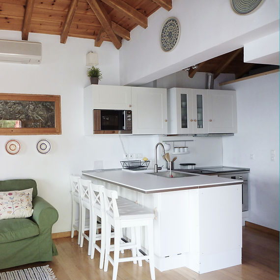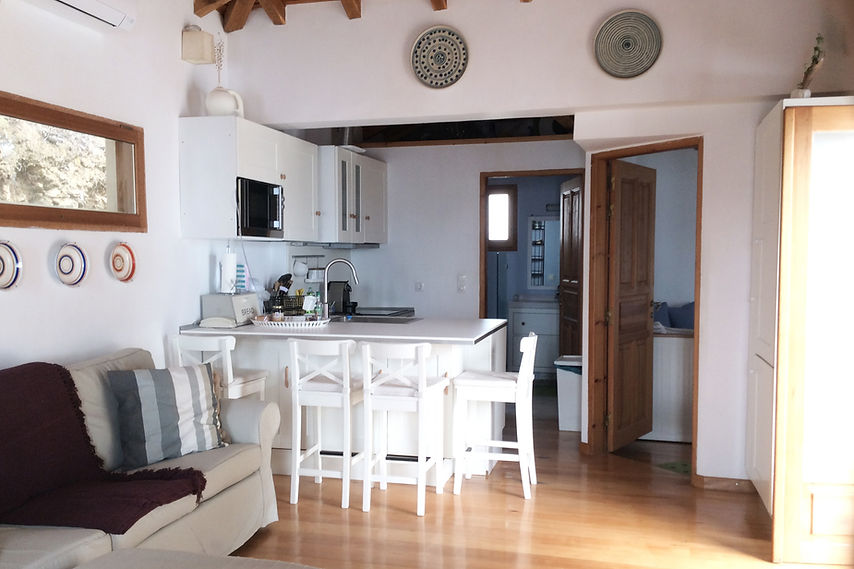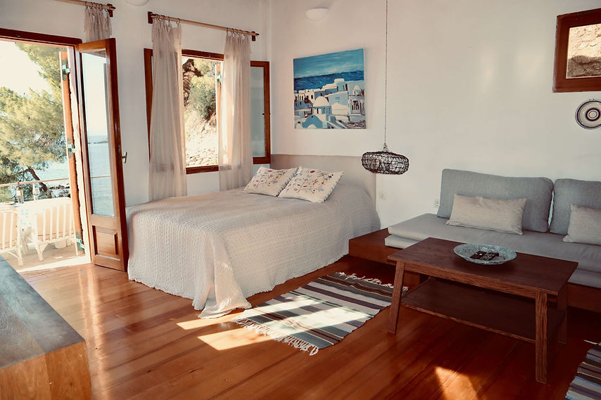 הוילה שוכנת על צלע גבעה על שטח עם פרטיות ושקט. גרם מדרגות קצר מוביל למטה אל חוף קטן לנווה מדבר ייחודי המציע פרטיות ובידוד אולטימטיביים באווירה ים תיכונית מושלמת .עיצוב בעץ גולמי וחשוף ואבן הם המרכיבים העיקריים. חלונות ופתחים רבים לזרימת רוח הים ואור השמש הטבעי . מרפסת גדולה עם נוף של הים ושל Troulos, והאי הקטן ישירות מול Folia.