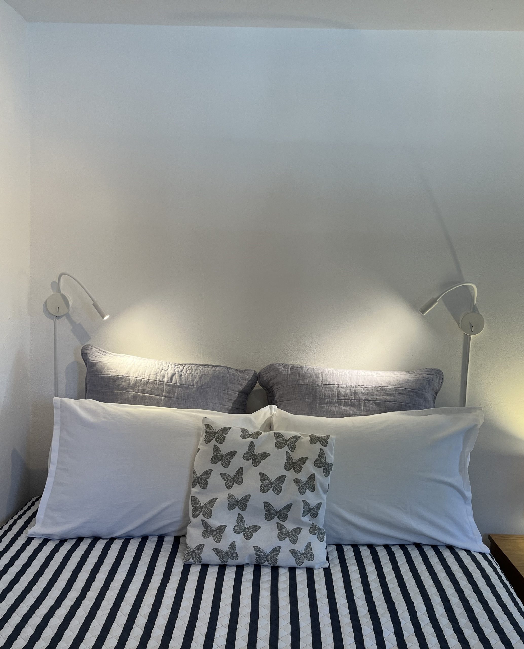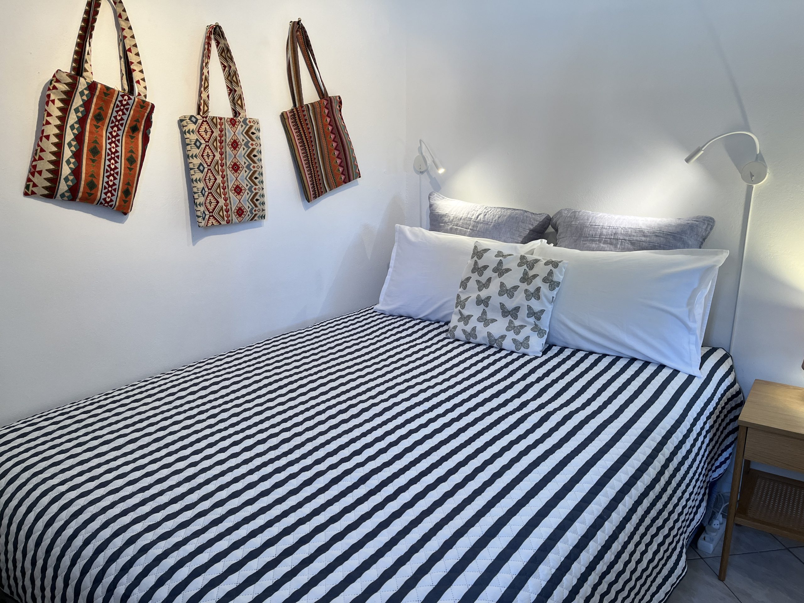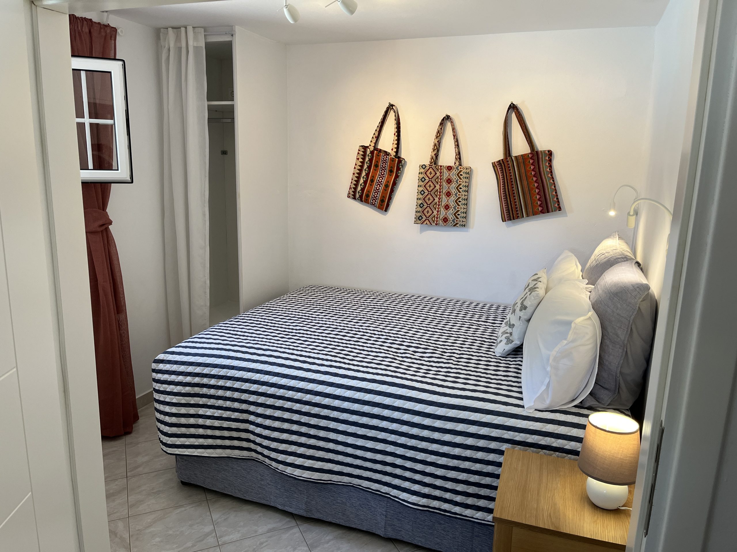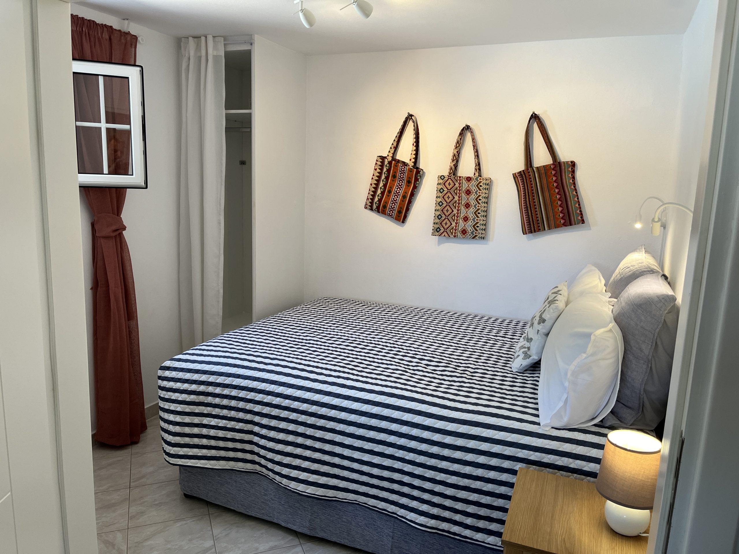 במעלה גרם המדרגות הפנימיים שני חדרי שינה עם גישה למרפסת ארוכה עם נוף יפהפה של הים היוני. יש חדר שינה ראשי עם חדר רחצה צמוד עם מקלחת ואמבטיה, וחדר שינה טווין עם חדר רחצה צמוד עם מקלחת. אזור השינה תוכנן תוך מחשבה על פרטיות.